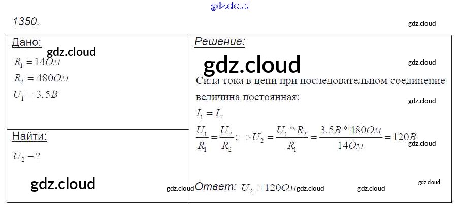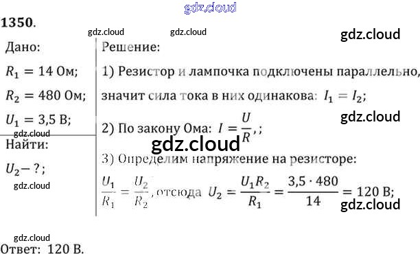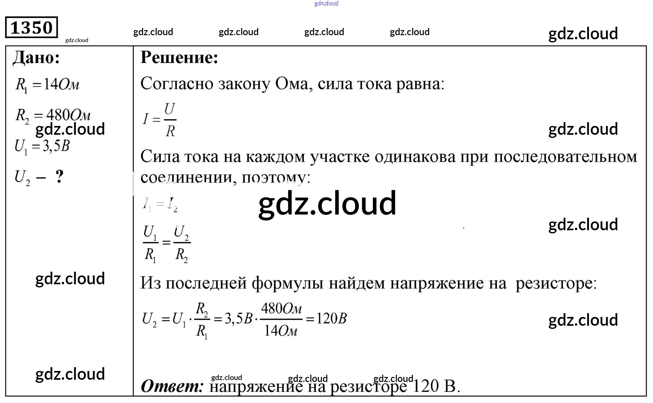 Ответ на задание 1350 Сборник задач Физика за 7, 8, 9 (седьмой, восьмой, девятый) класс Лукашик, Иванова 2011