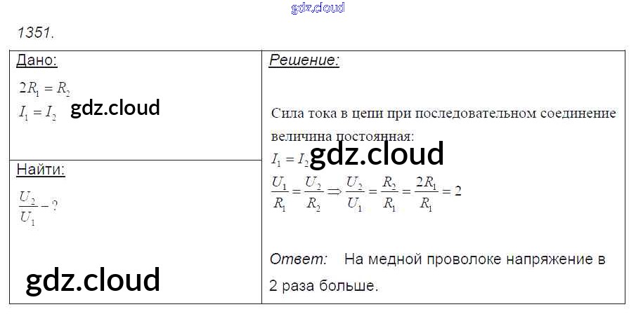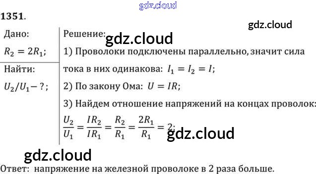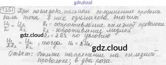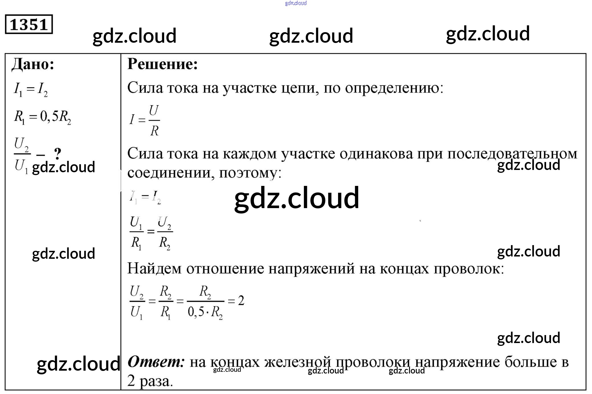 Ответ на задание 1351 Сборник задач Физика за 7, 8, 9 (седьмой, восьмой, девятый) класс Лукашик, Иванова 2011