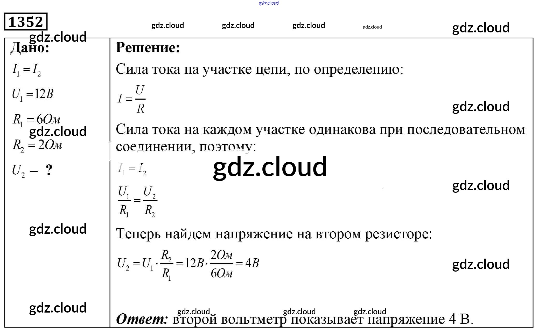 Ответ на задание 1352 Сборник задач Физика за 7, 8, 9 (седьмой, восьмой, девятый) класс Лукашик, Иванова 2011