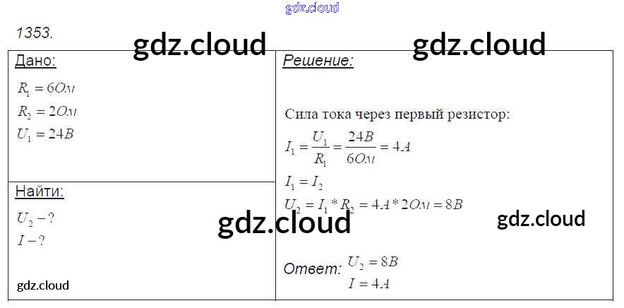 Ответ на задание 1353 Сборник задач Физика за 7, 8, 9 (седьмой, восьмой, девятый) класс Лукашик, Иванова 2011