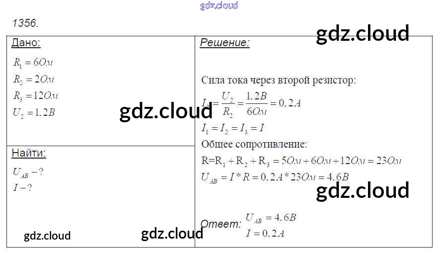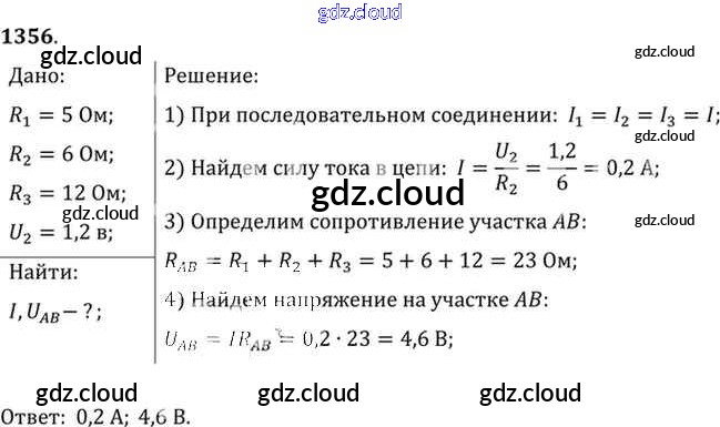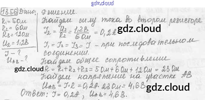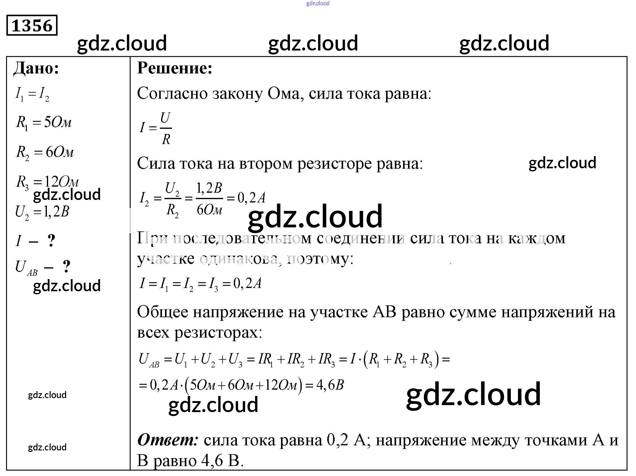Ответ на задание 1356 Сборник задач Физика за 7, 8, 9 (седьмой, восьмой, девятый) класс Лукашик, Иванова 2011