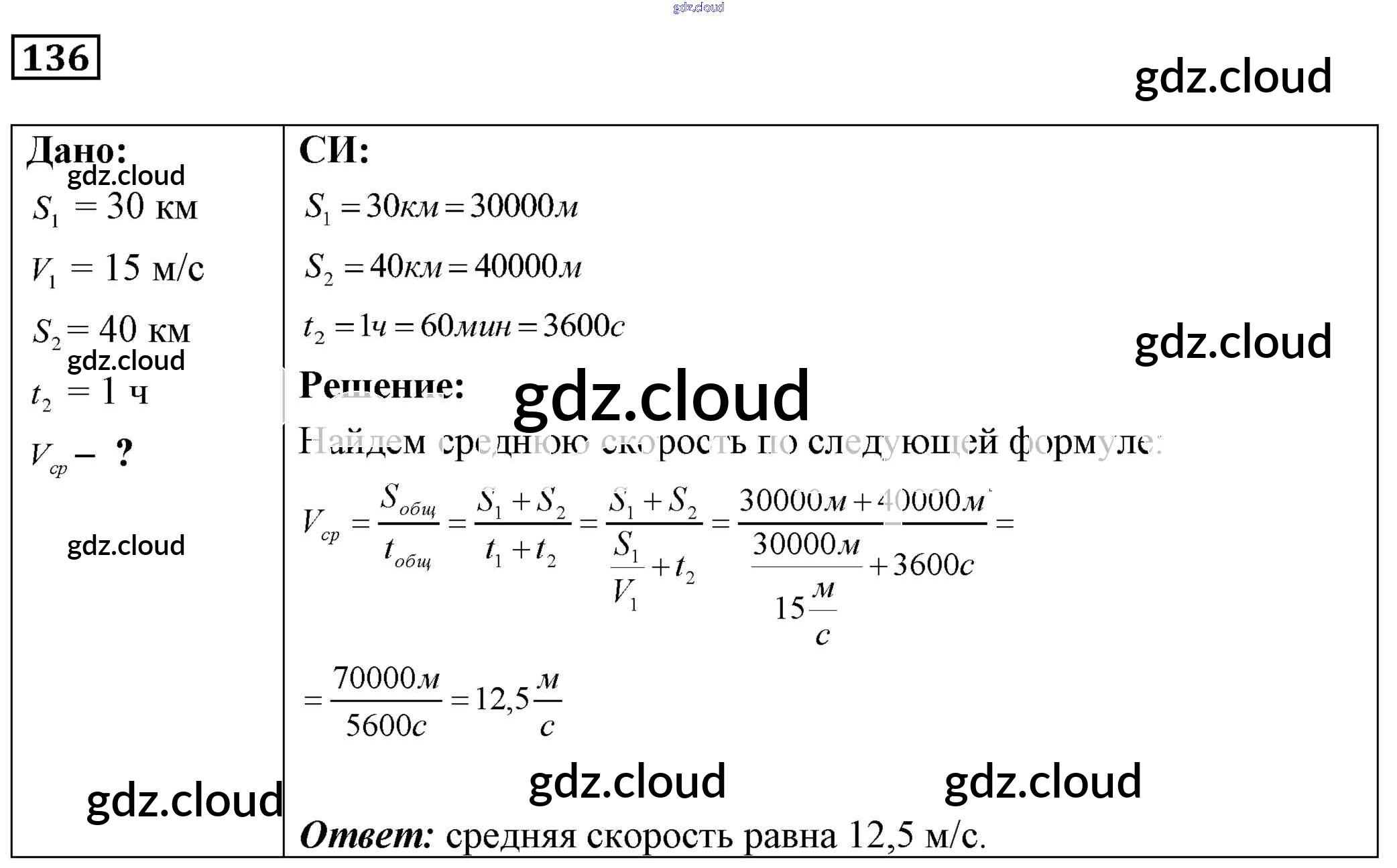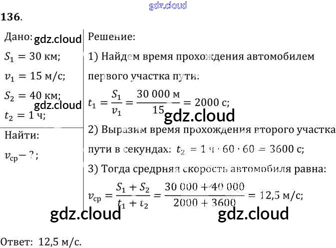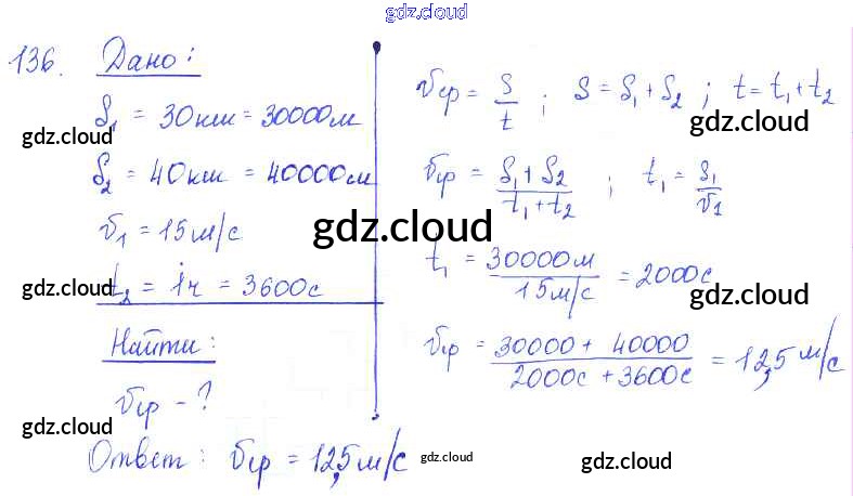 Ответ на задание 136 Сборник задач Физика за 7, 8, 9 (седьмой, восьмой, девятый) класс Лукашик, Иванова 2011