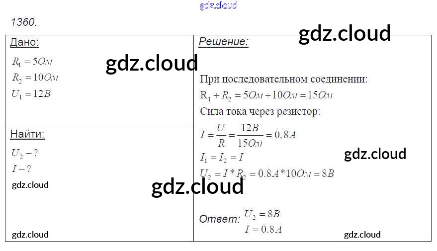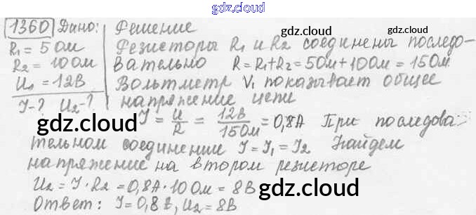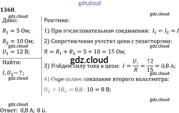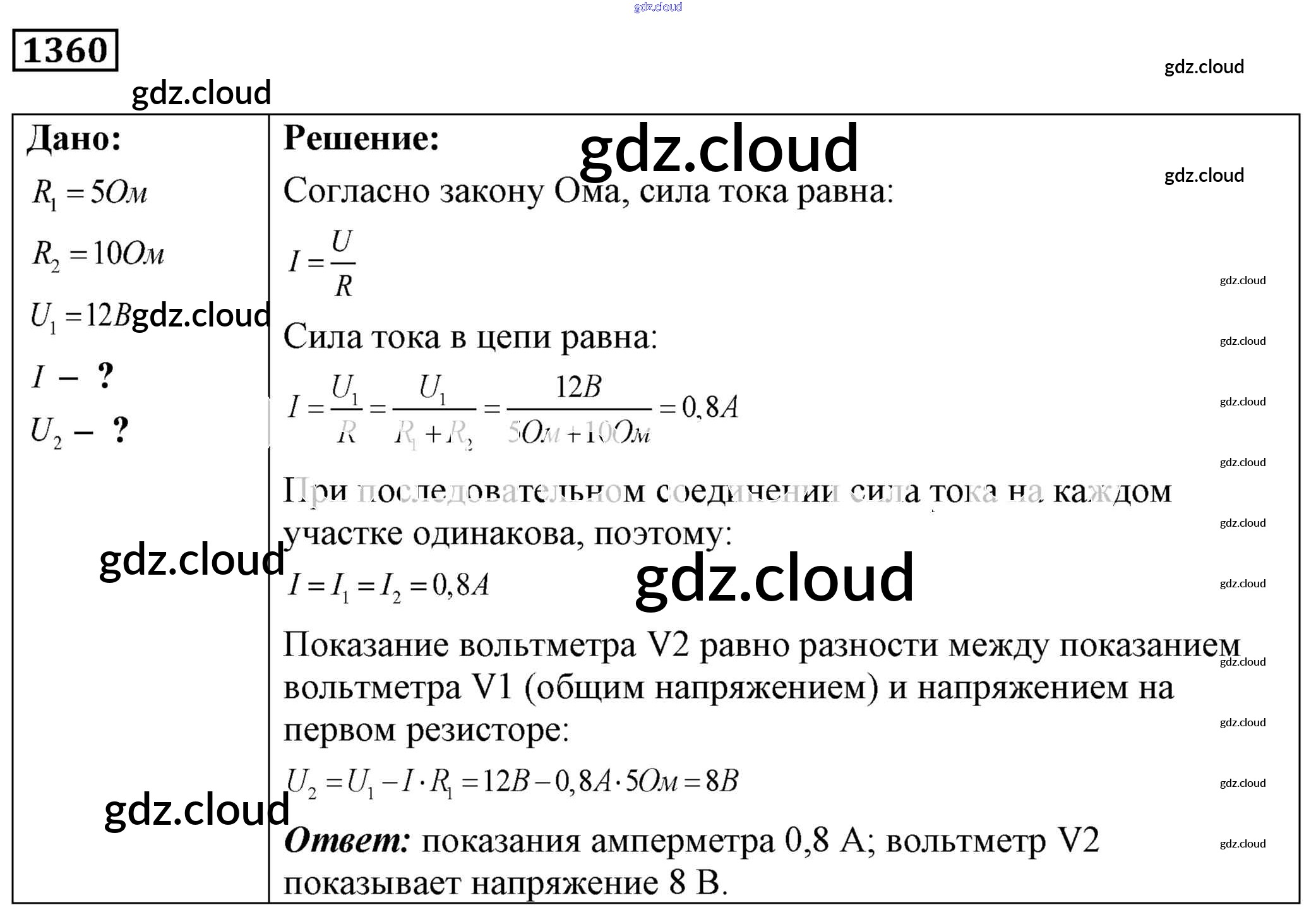 Ответ на задание 1360 Сборник задач Физика за 7, 8, 9 (седьмой, восьмой, девятый) класс Лукашик, Иванова 2011