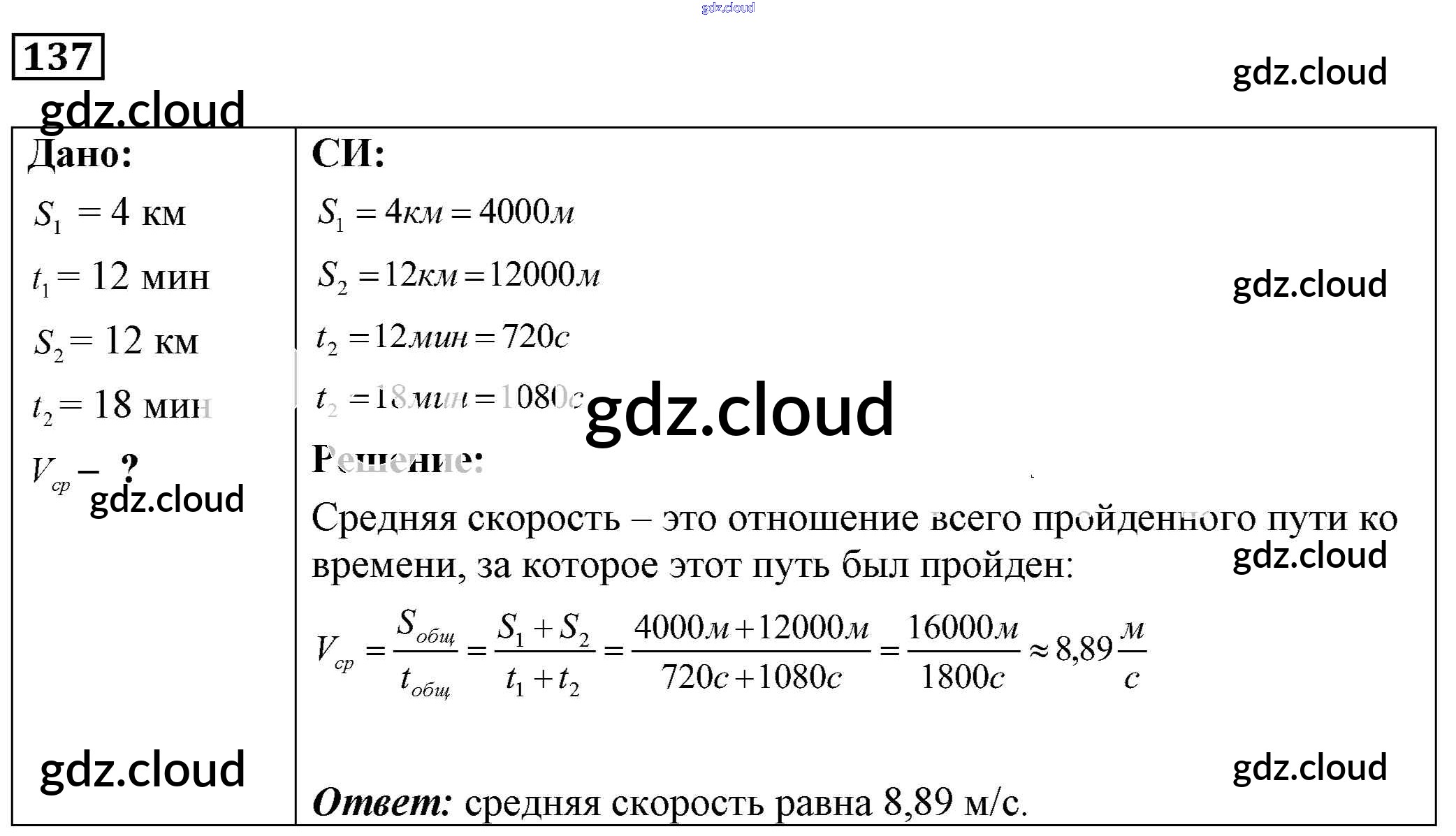 Ответ на задание 137 Сборник задач Физика за 7, 8, 9 (седьмой, восьмой, девятый) класс Лукашик, Иванова 2011