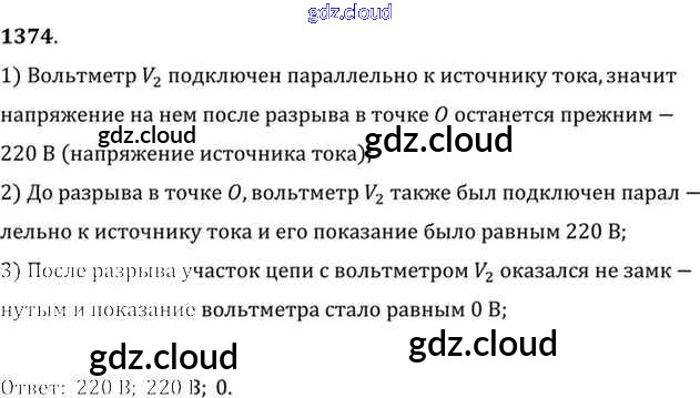 Ответ на задание 1374 Сборник задач Физика за 7, 8, 9 (седьмой, восьмой, девятый) класс Лукашик, Иванова 2011