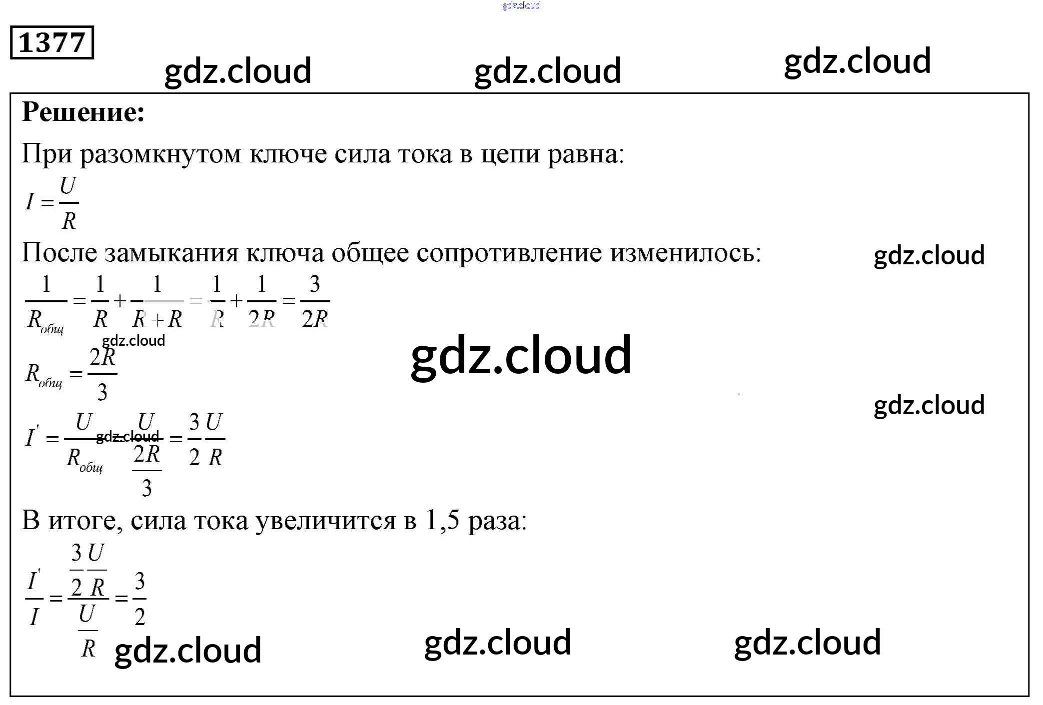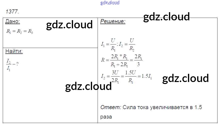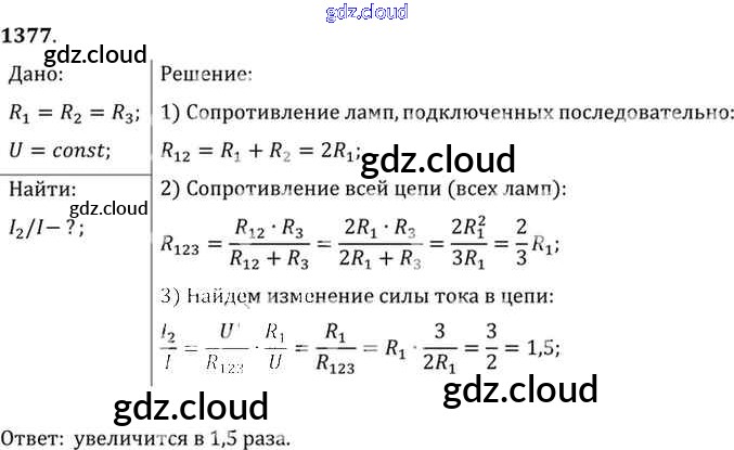 Ответ на задание 1377 Сборник задач Физика за 7, 8, 9 (седьмой, восьмой, девятый) класс Лукашик, Иванова 2011