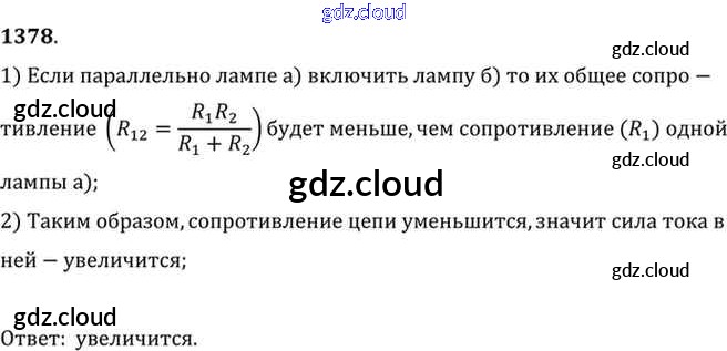 Ответ на задание 1378 Сборник задач Физика за 7, 8, 9 (седьмой, восьмой, девятый) класс Лукашик, Иванова 2011