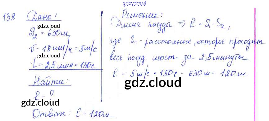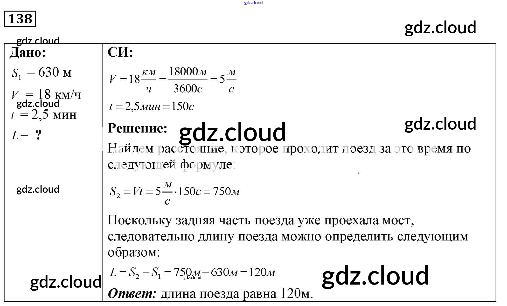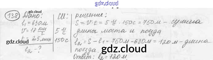 Ответ на задание 138 Сборник задач Физика за 7, 8, 9 (седьмой, восьмой, девятый) класс Лукашик, Иванова 2011