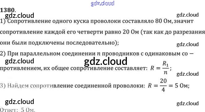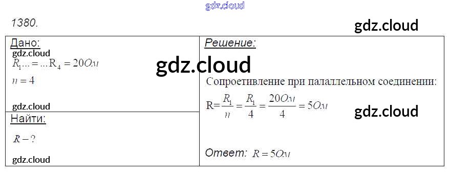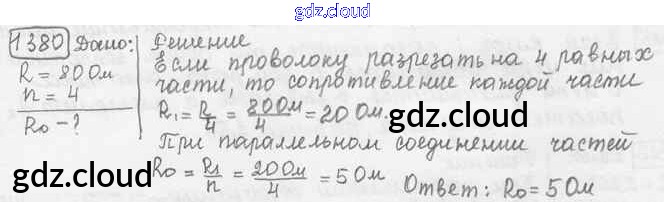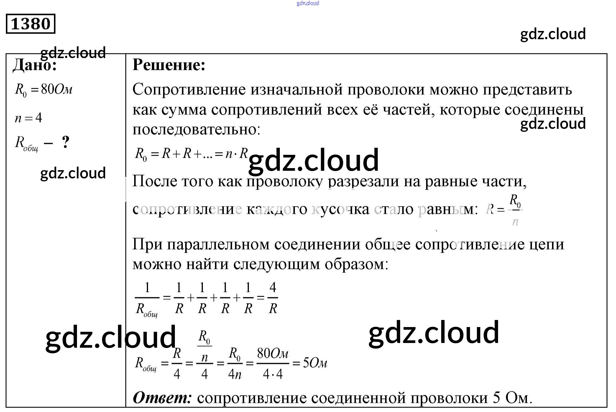 Ответ на задание 1380 Сборник задач Физика за 7, 8, 9 (седьмой, восьмой, девятый) класс Лукашик, Иванова 2011