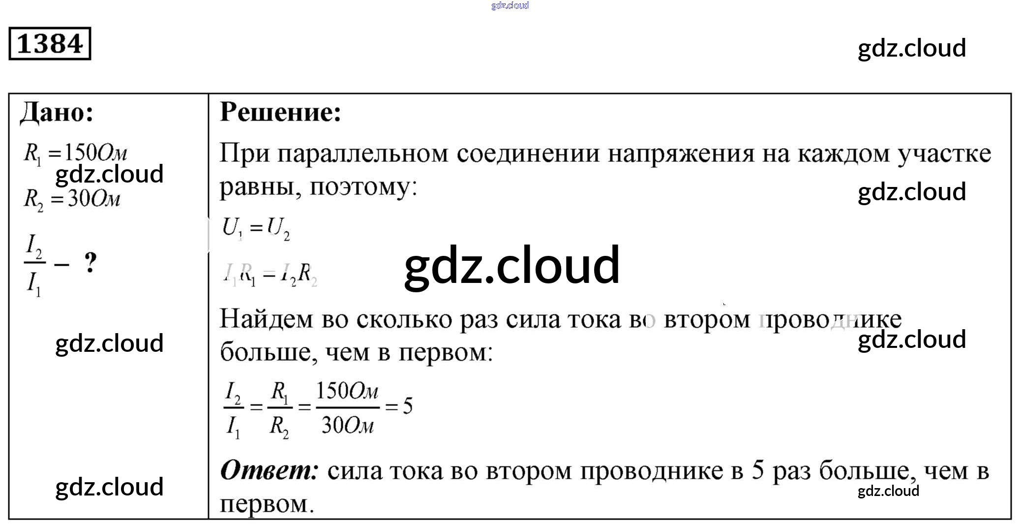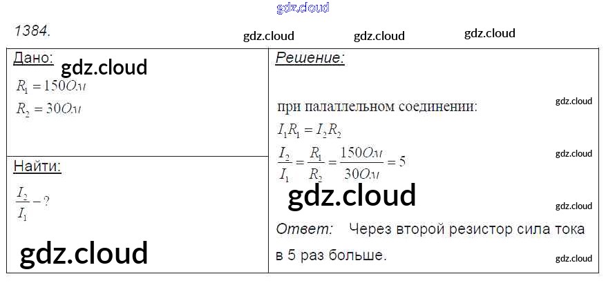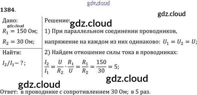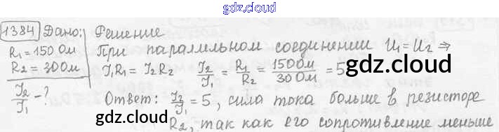 Ответ на задание 1384 Сборник задач Физика за 7, 8, 9 (седьмой, восьмой, девятый) класс Лукашик, Иванова 2011