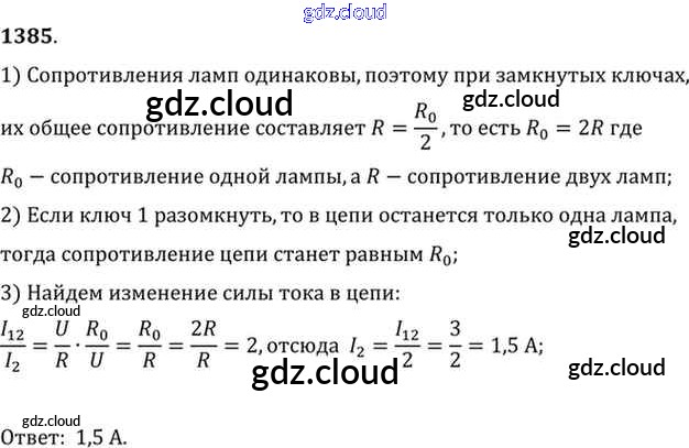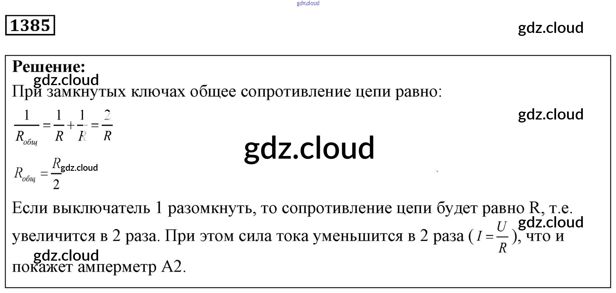Ответ на задание 1385 Сборник задач Физика за 7, 8, 9 (седьмой, восьмой, девятый) класс Лукашик, Иванова 2011