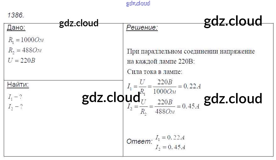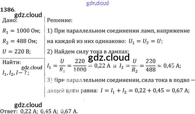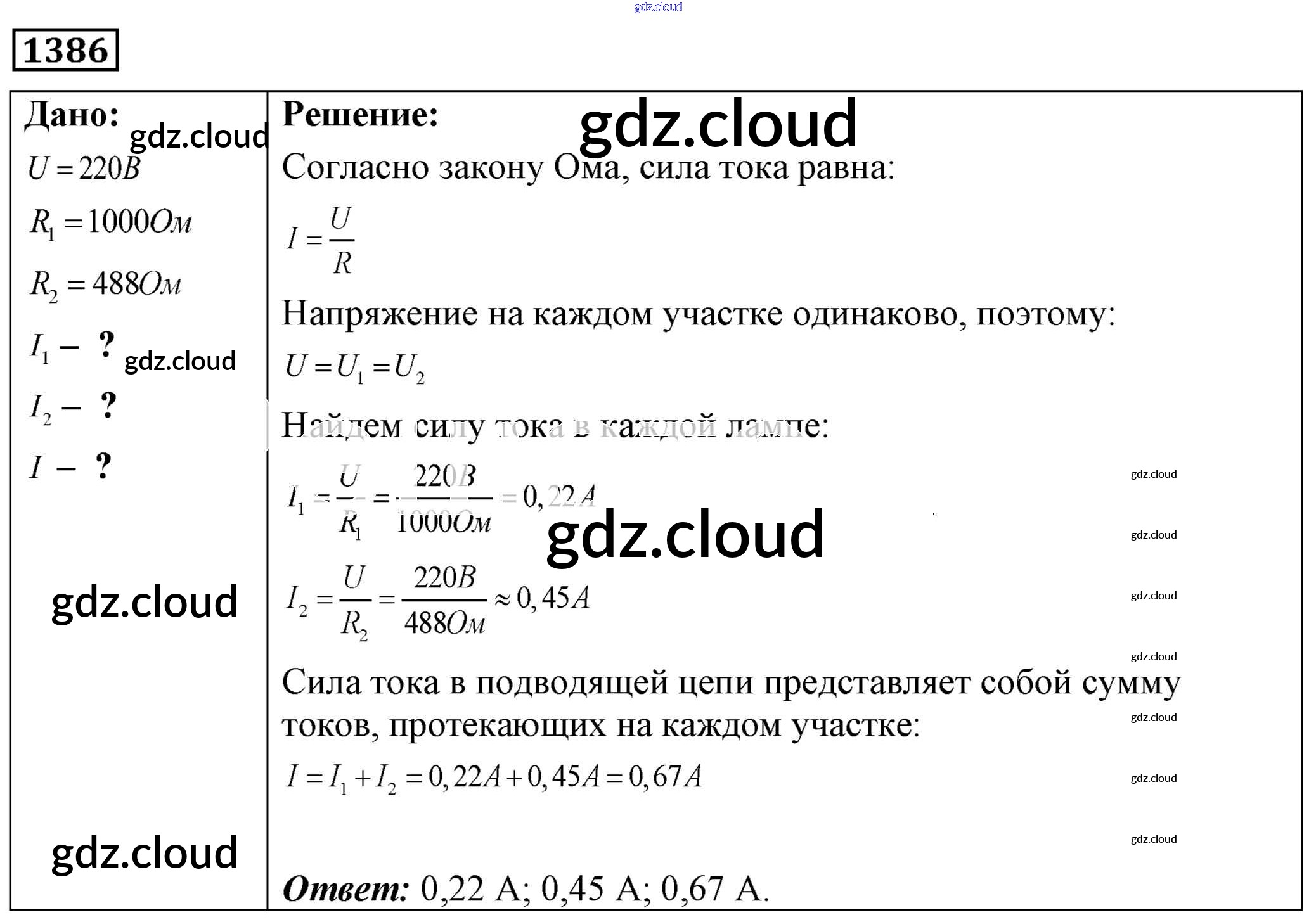 Ответ на задание 1386 Сборник задач Физика за 7, 8, 9 (седьмой, восьмой, девятый) класс Лукашик, Иванова 2011
