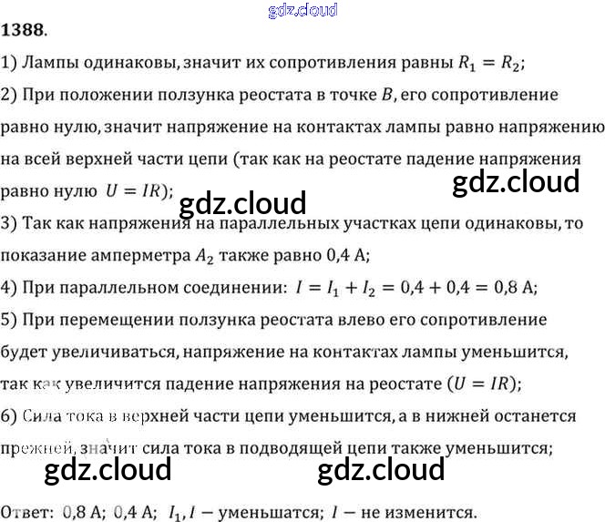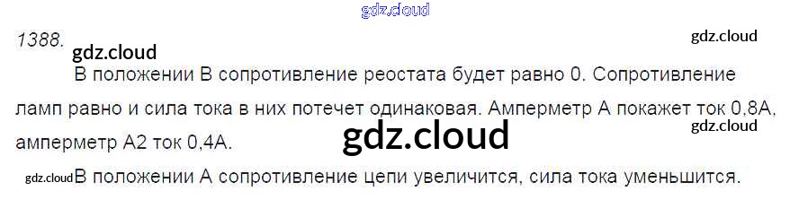 Ответ на задание 1388 Сборник задач Физика за 7, 8, 9 (седьмой, восьмой, девятый) класс Лукашик, Иванова 2011