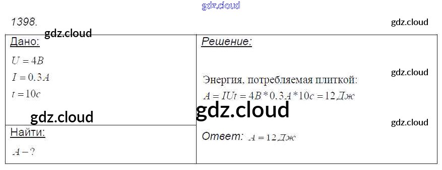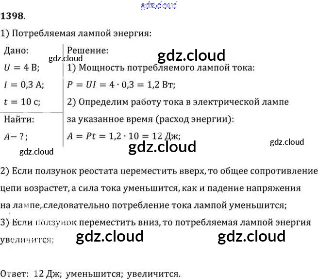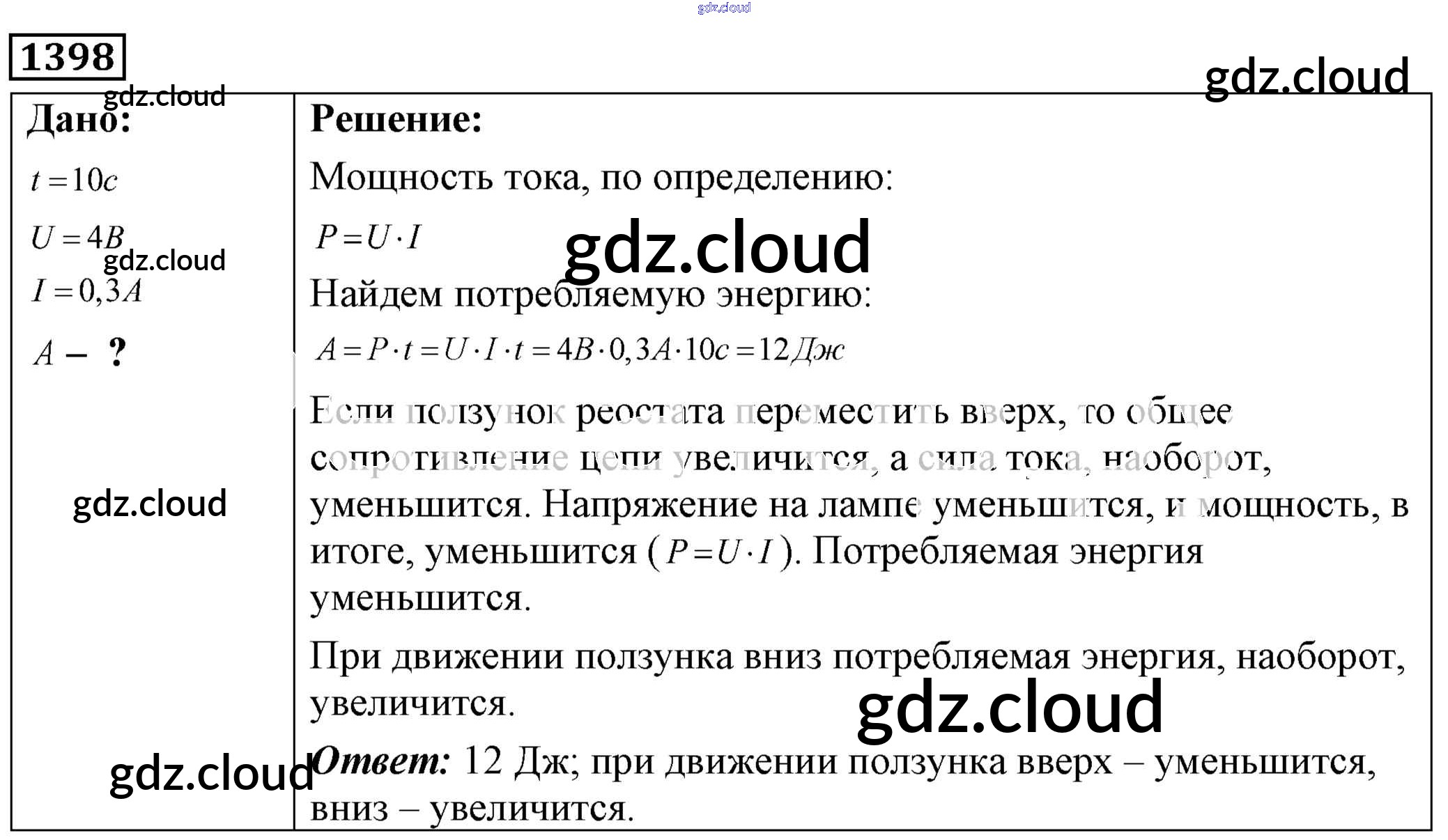Ответ на задание 1398 Сборник задач Физика за 7, 8, 9 (седьмой, восьмой, девятый) класс Лукашик, Иванова 2011