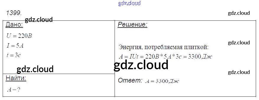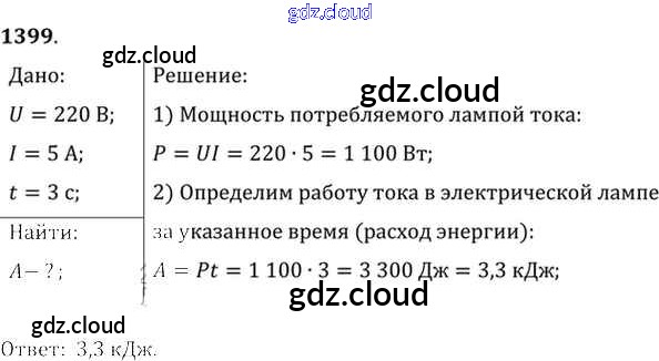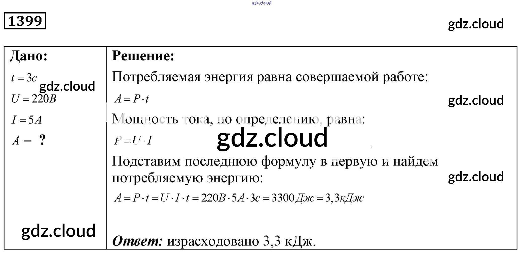 Ответ на задание 1399 Сборник задач Физика за 7, 8, 9 (седьмой, восьмой, девятый) класс Лукашик, Иванова 2011