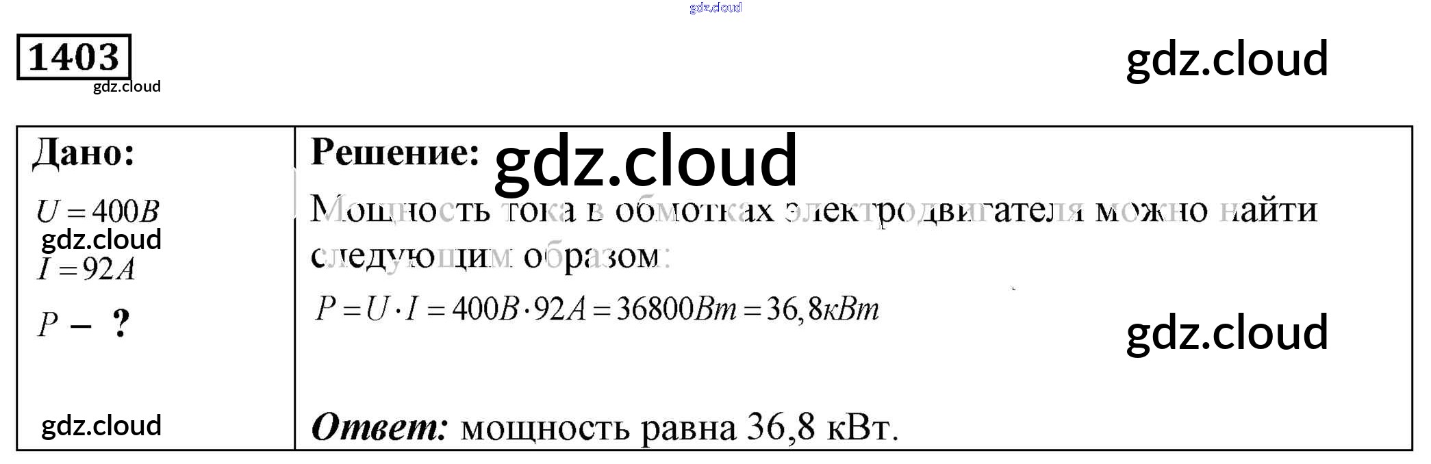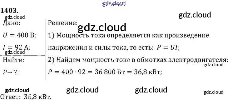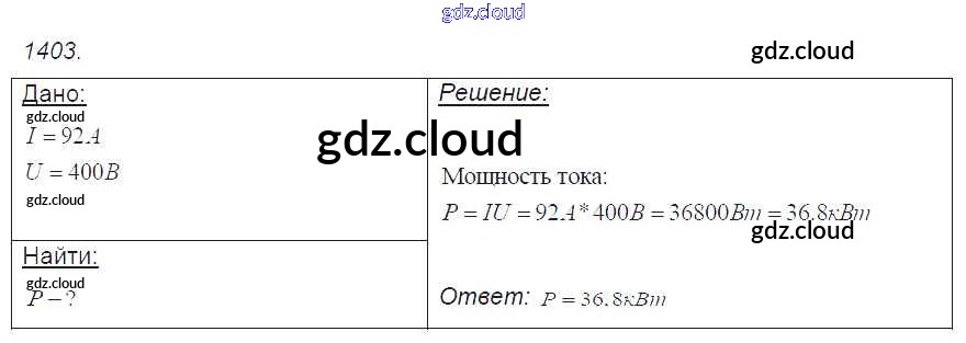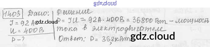 Ответ на задание 1403 Сборник задач Физика за 7, 8, 9 (седьмой, восьмой, девятый) класс Лукашик, Иванова 2011