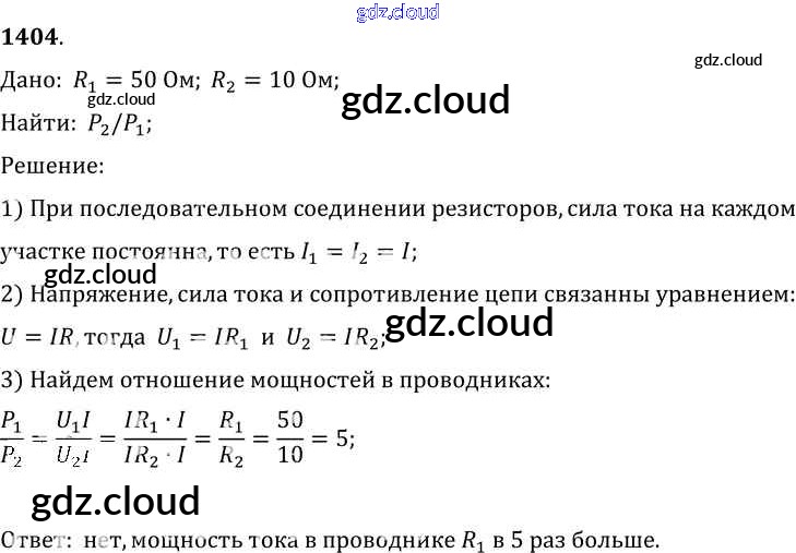 Ответ на задание 1404 Сборник задач Физика за 7, 8, 9 (седьмой, восьмой, девятый) класс Лукашик, Иванова 2011