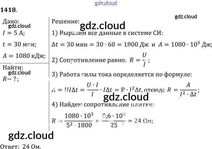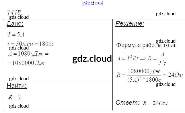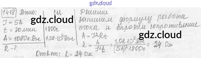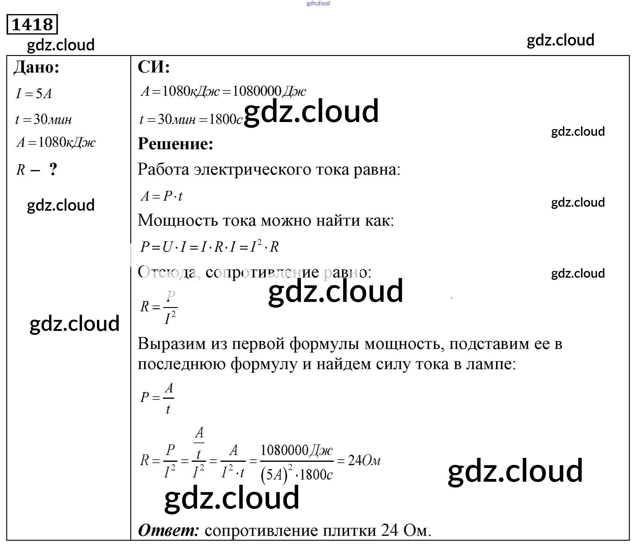 Ответ на задание 1418 Сборник задач Физика за 7, 8, 9 (седьмой, восьмой, девятый) класс Лукашик, Иванова 2011