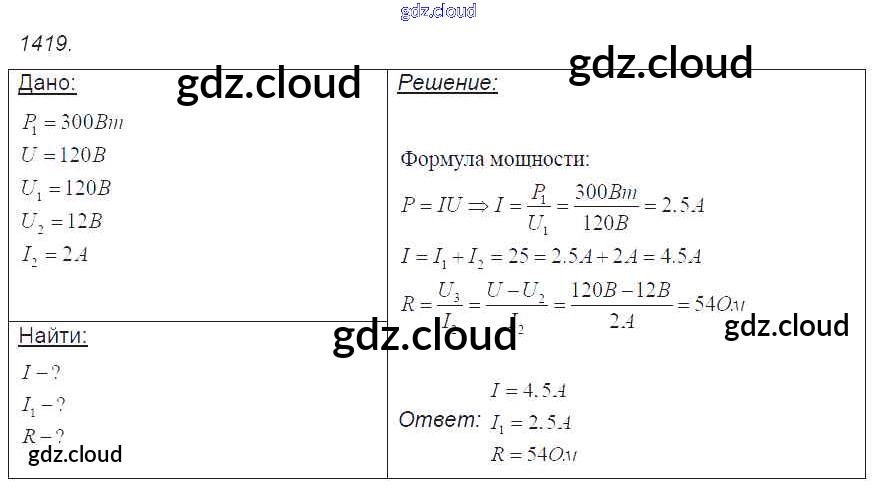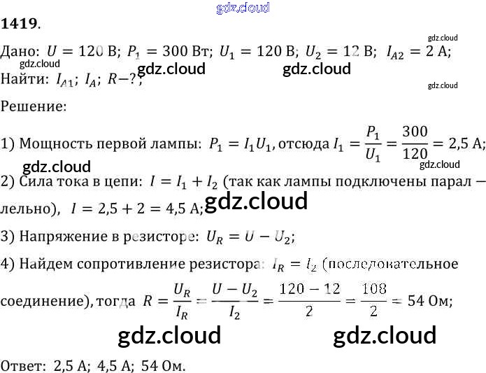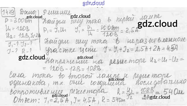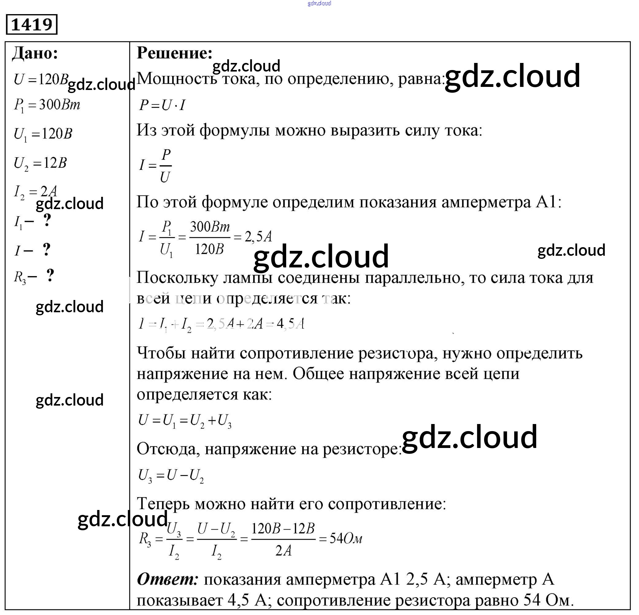 Ответ на задание 1419 Сборник задач Физика за 7, 8, 9 (седьмой, восьмой, девятый) класс Лукашик, Иванова 2011