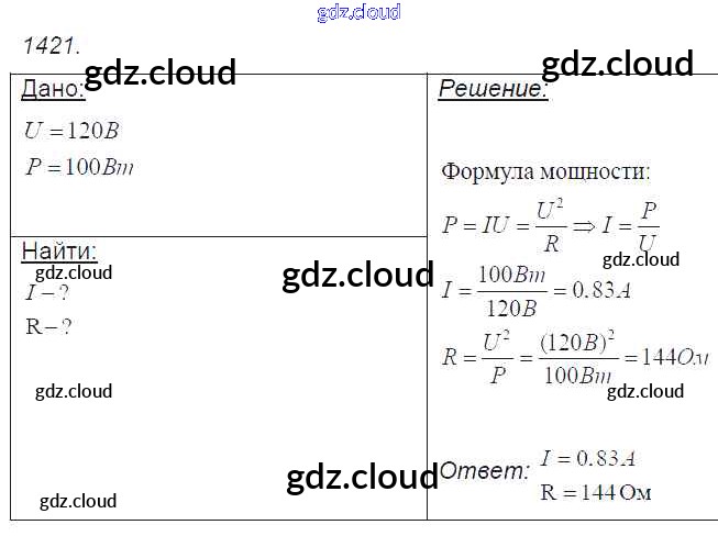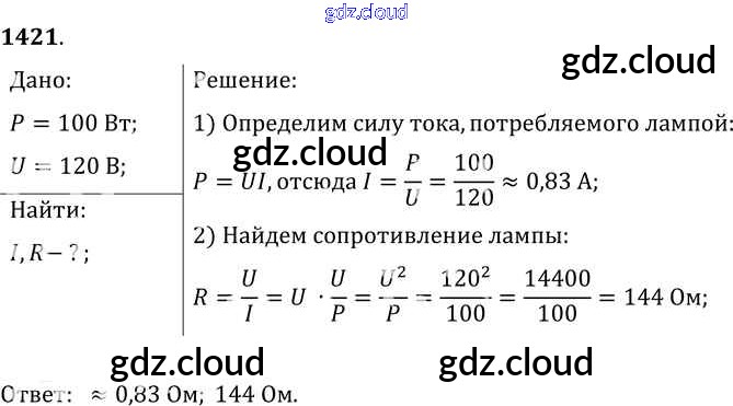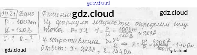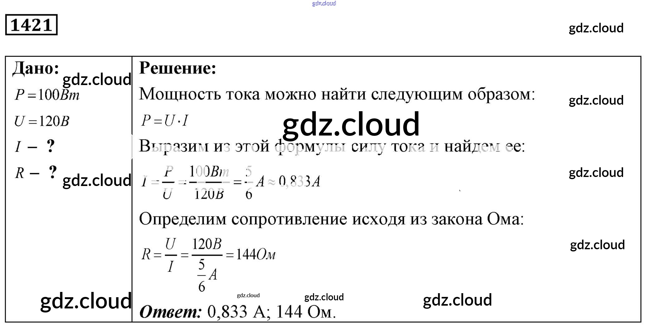 Ответ на задание 1421 Сборник задач Физика за 7, 8, 9 (седьмой, восьмой, девятый) класс Лукашик, Иванова 2011