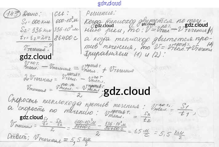 Ответ на задание 143 Сборник задач Физика за 7, 8, 9 (седьмой, восьмой, девятый) класс Лукашик, Иванова 2011