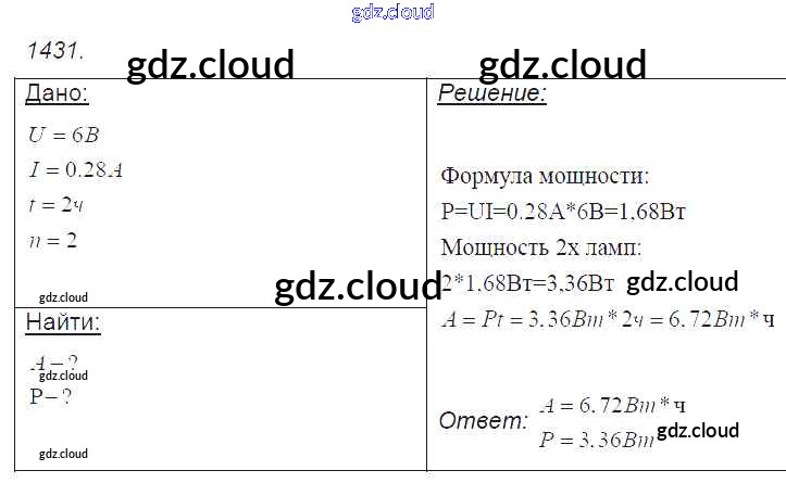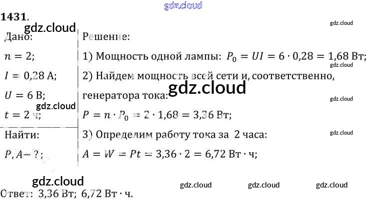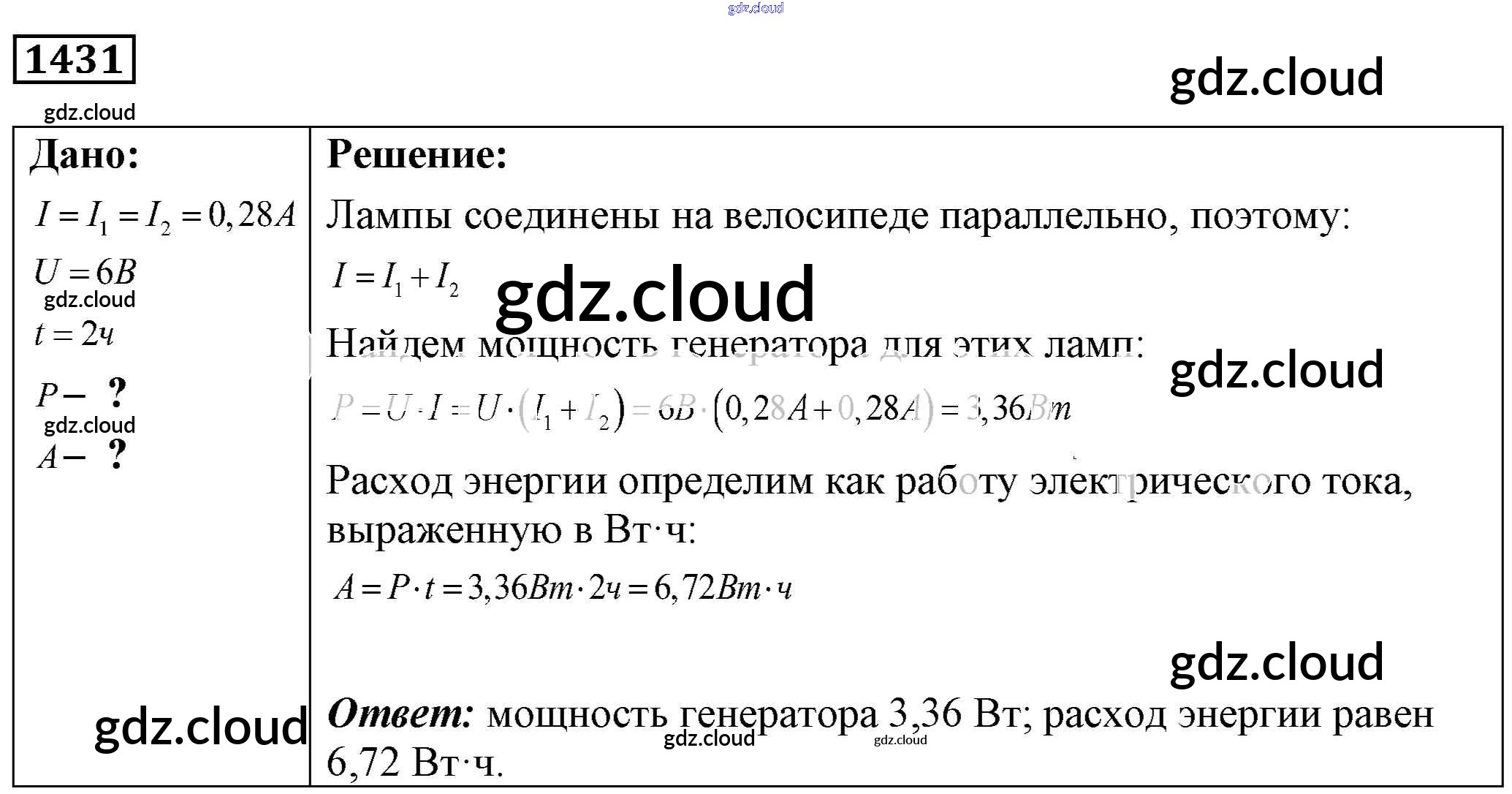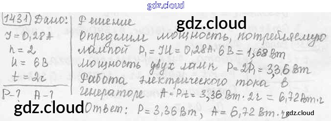 Ответ на задание 1431 Сборник задач Физика за 7, 8, 9 (седьмой, восьмой, девятый) класс Лукашик, Иванова 2011