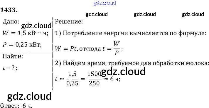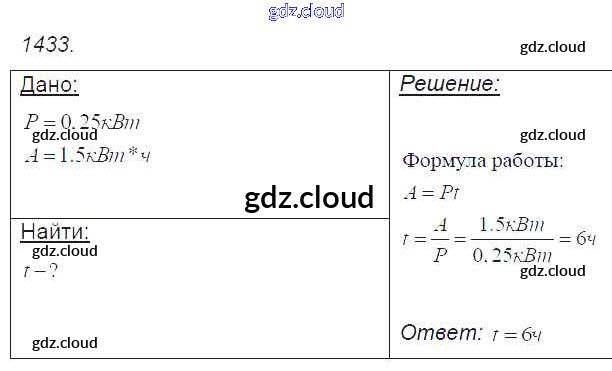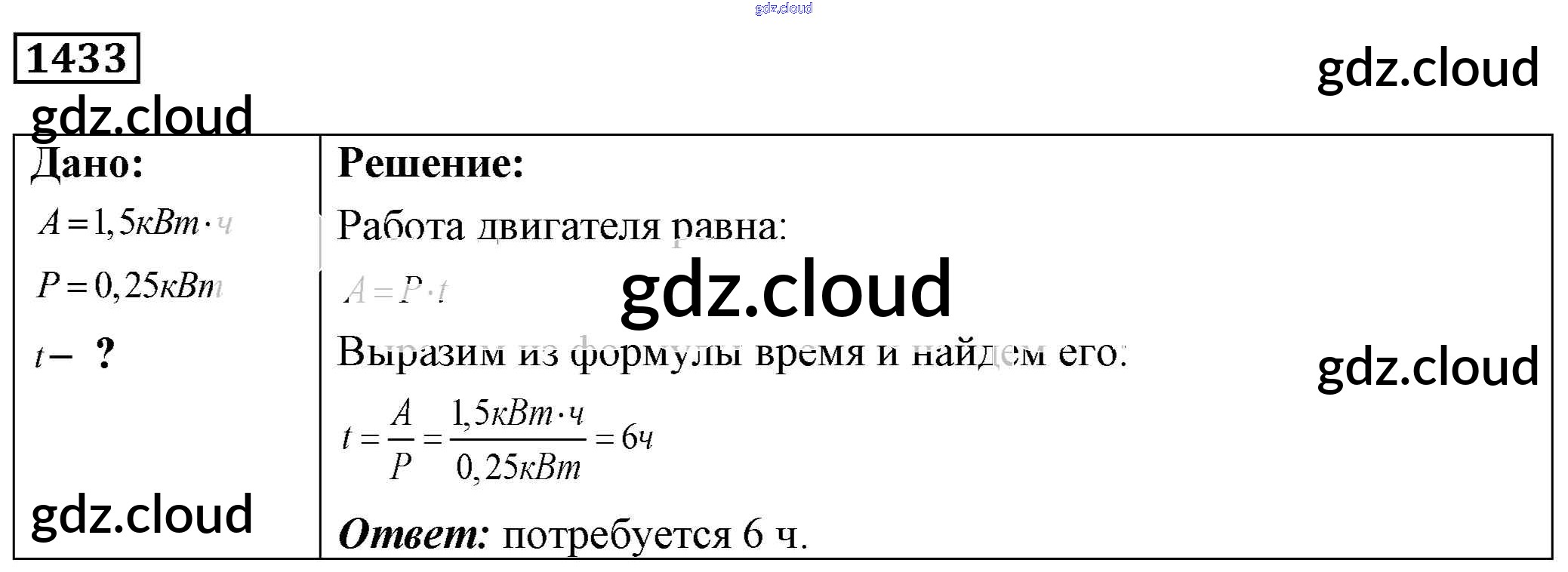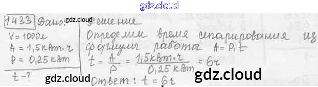 Ответ на задание 1433 Сборник задач Физика за 7, 8, 9 (седьмой, восьмой, девятый) класс Лукашик, Иванова 2011
