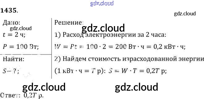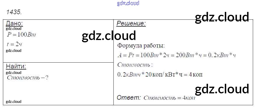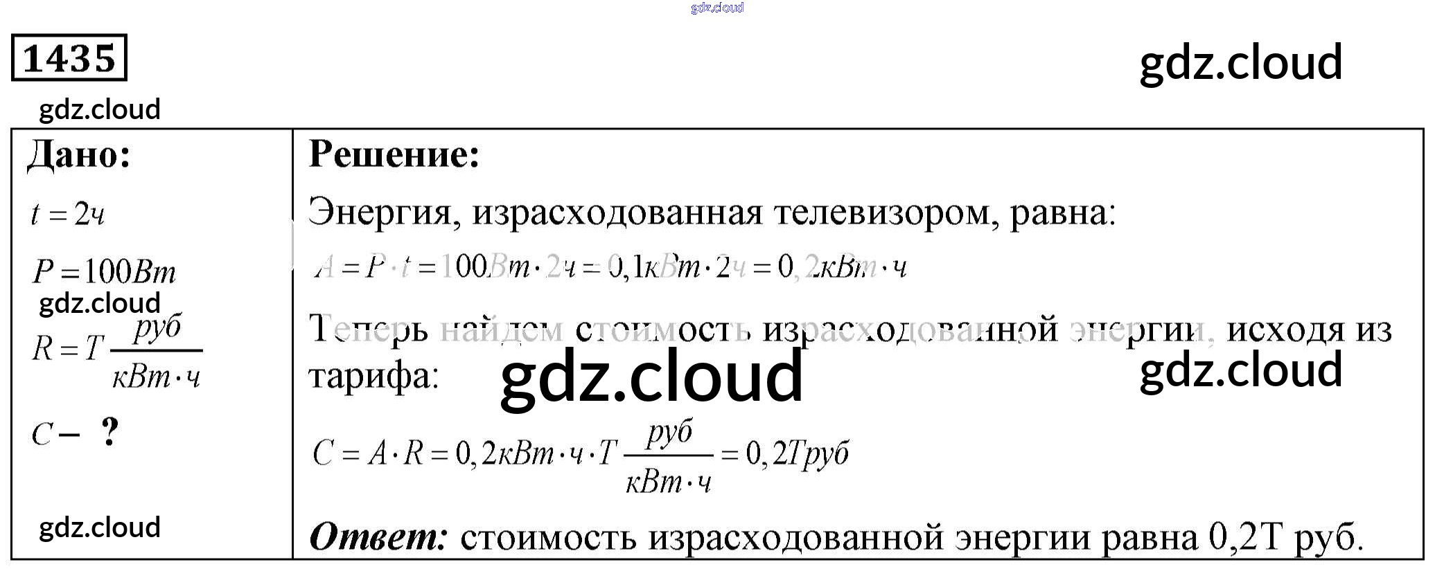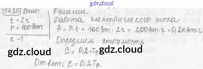 Ответ на задание 1435 Сборник задач Физика за 7, 8, 9 (седьмой, восьмой, девятый) класс Лукашик, Иванова 2011
