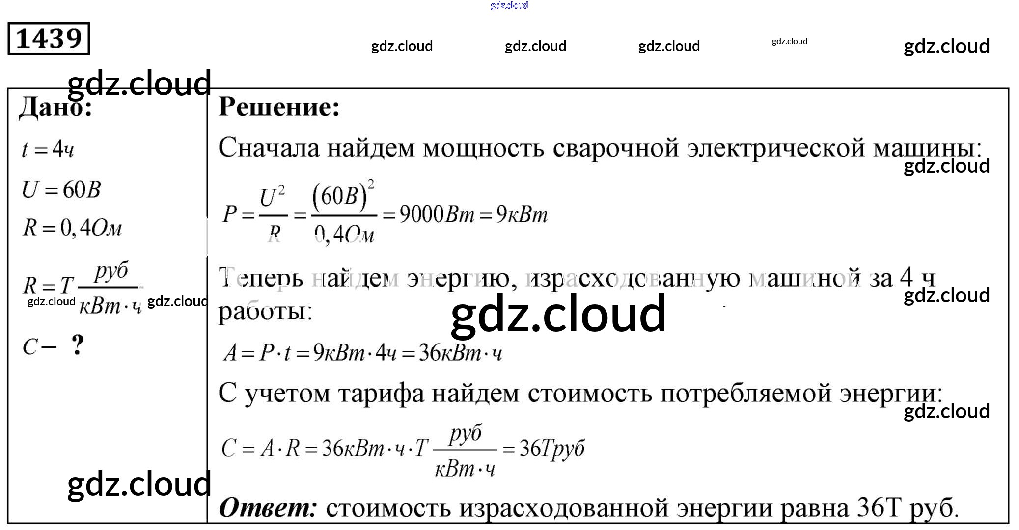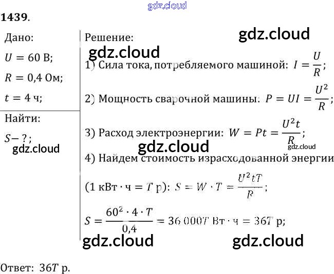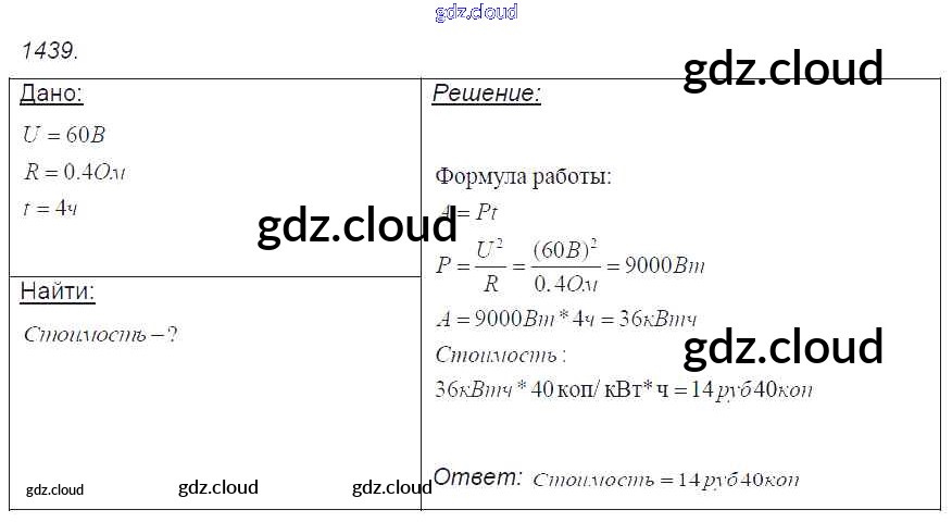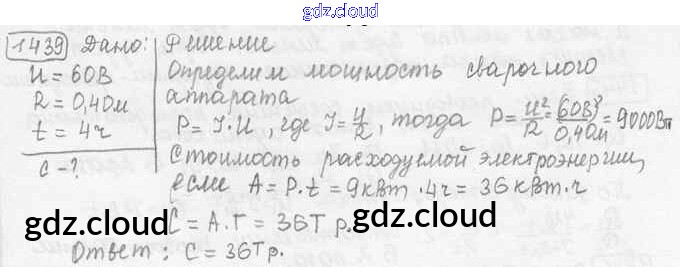 Ответ на задание 1439 Сборник задач Физика за 7, 8, 9 (седьмой, восьмой, девятый) класс Лукашик, Иванова 2011
