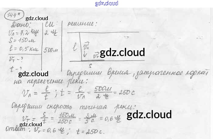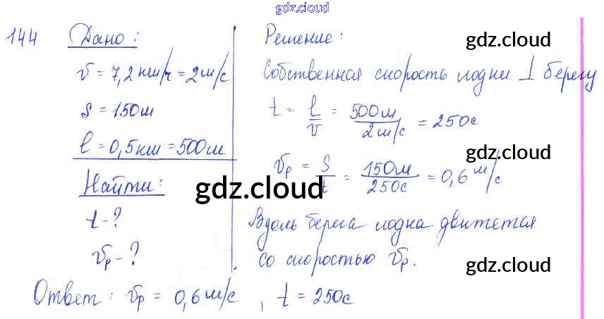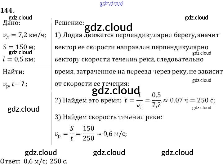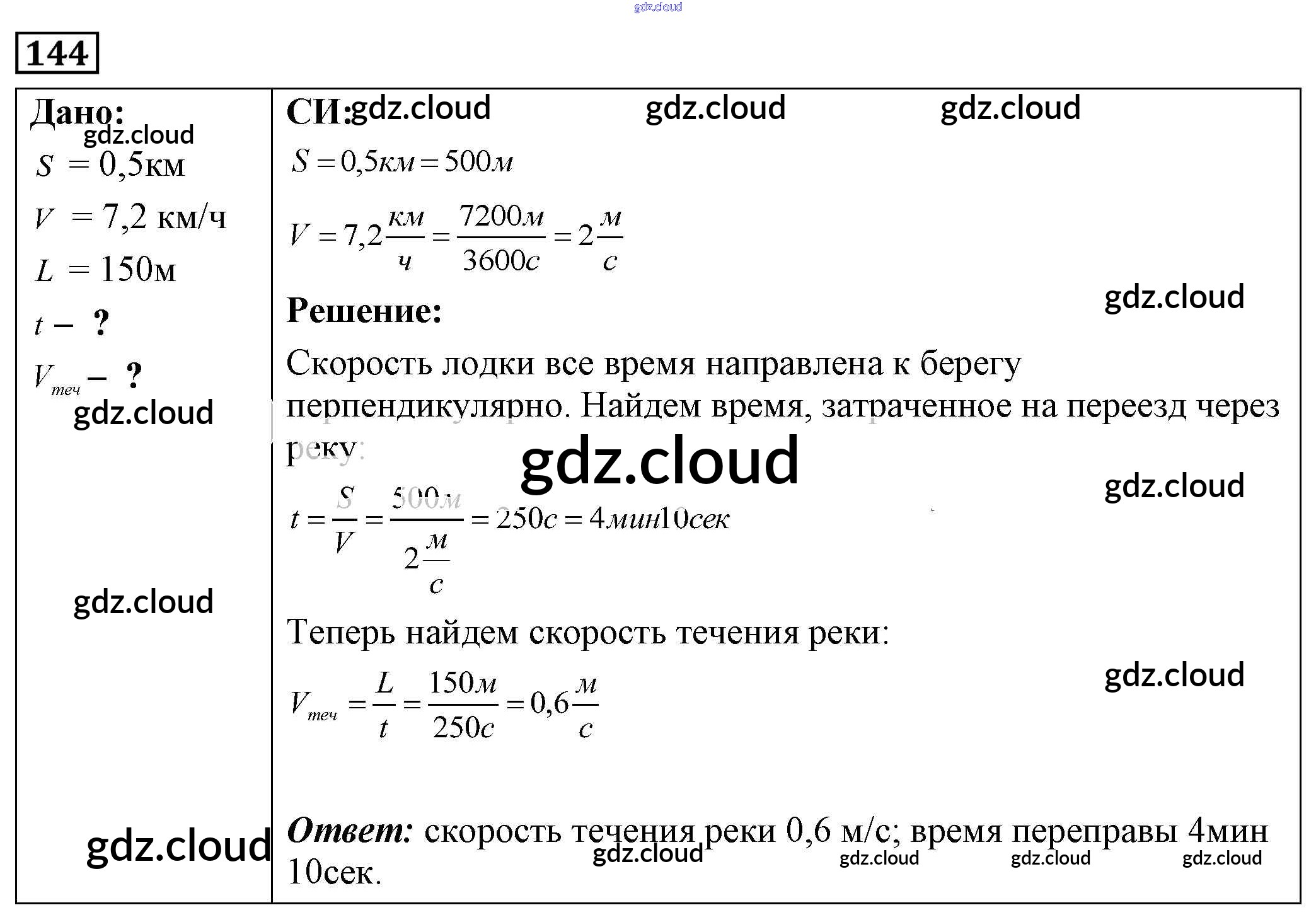 Ответ на задание 144 Сборник задач Физика за 7, 8, 9 (седьмой, восьмой, девятый) класс Лукашик, Иванова 2011