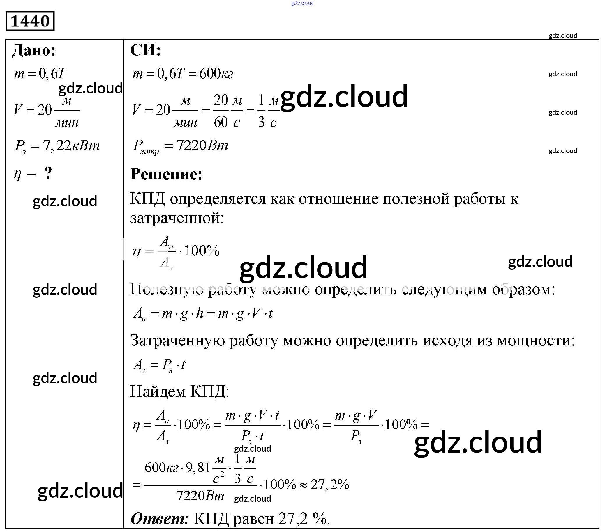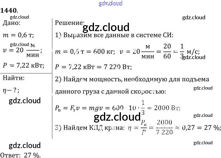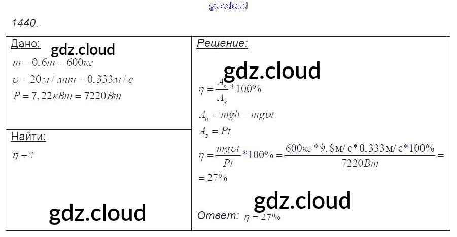 Ответ на задание 1440 Сборник задач Физика за 7, 8, 9 (седьмой, восьмой, девятый) класс Лукашик, Иванова 2011