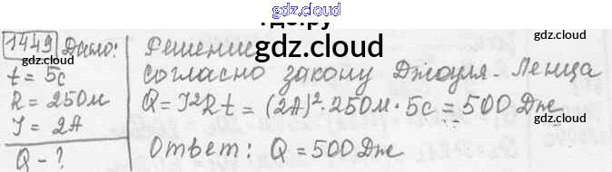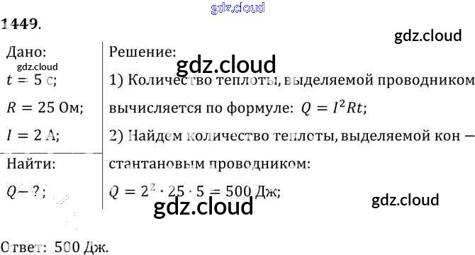 Ответ на задание 1449 Сборник задач Физика за 7, 8, 9 (седьмой, восьмой, девятый) класс Лукашик, Иванова 2011