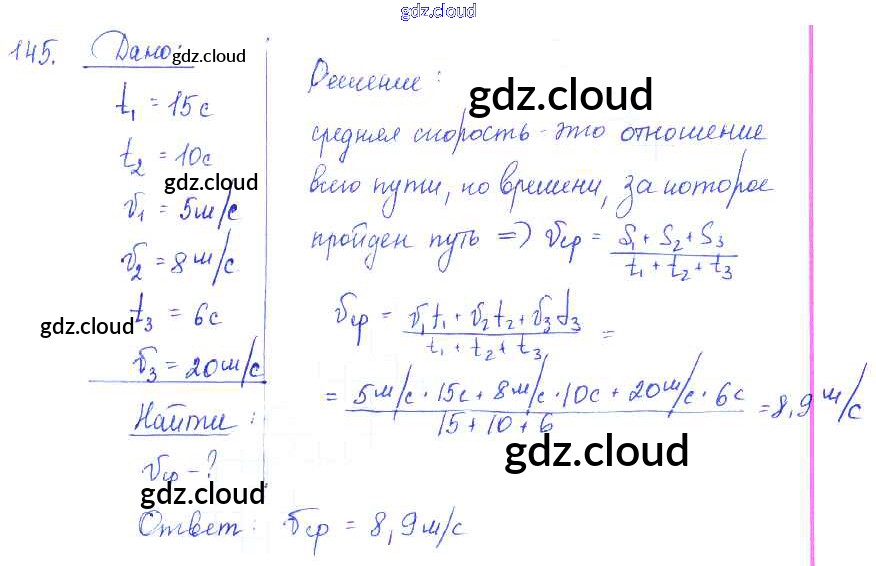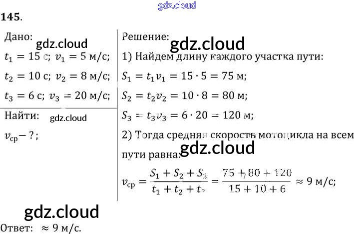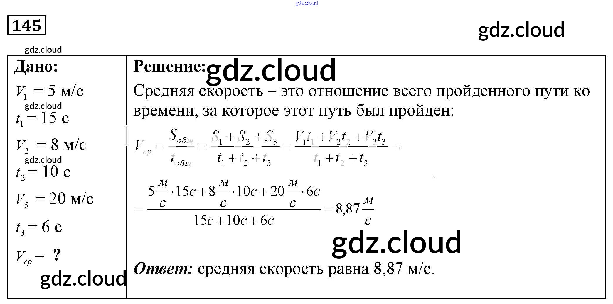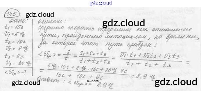 Ответ на задание 145 Сборник задач Физика за 7, 8, 9 (седьмой, восьмой, девятый) класс Лукашик, Иванова 2011