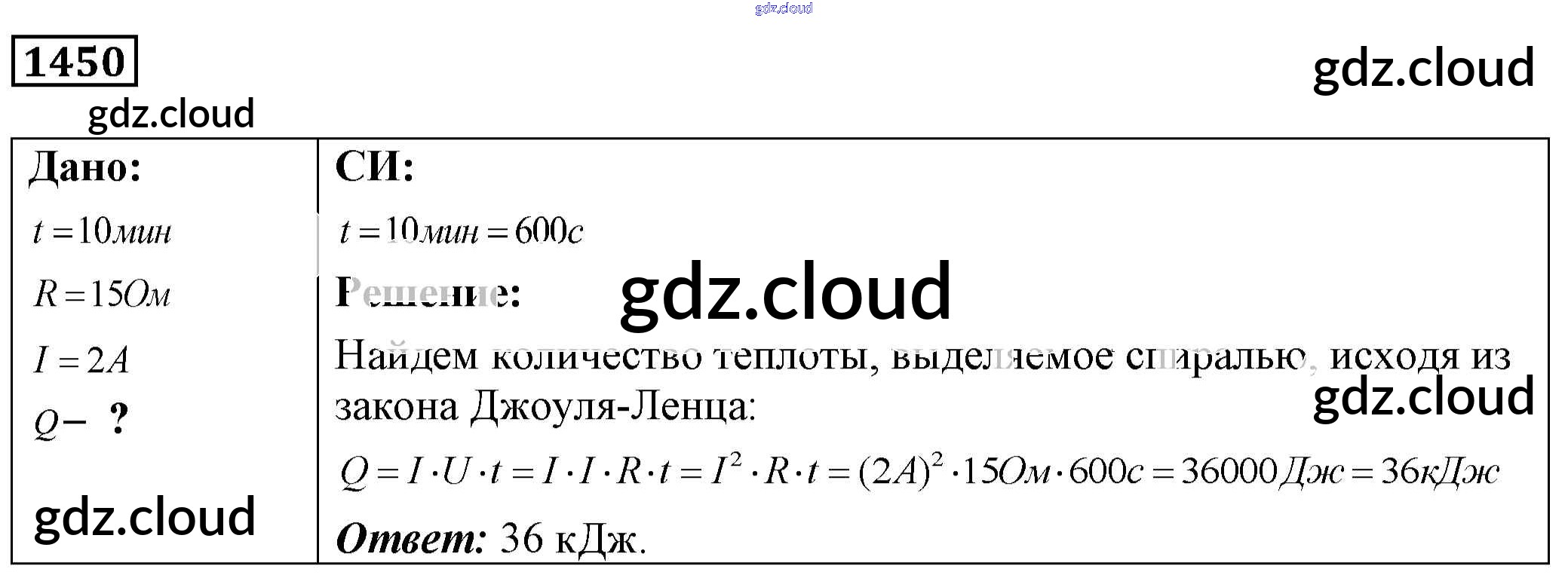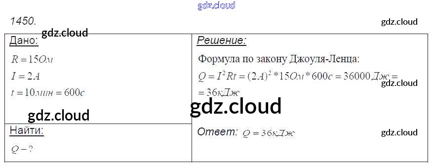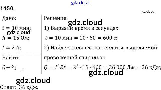 Ответ на задание 1450 Сборник задач Физика за 7, 8, 9 (седьмой, восьмой, девятый) класс Лукашик, Иванова 2011