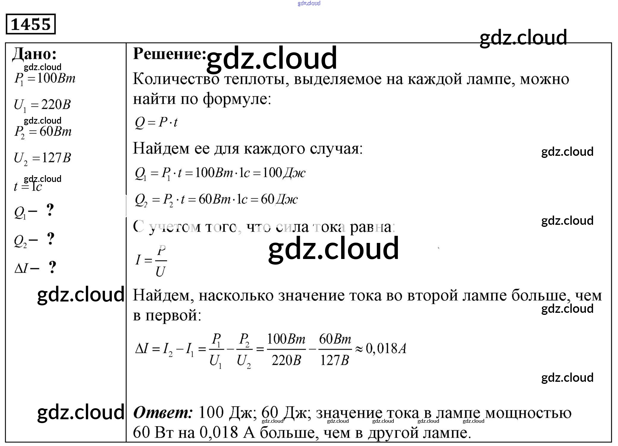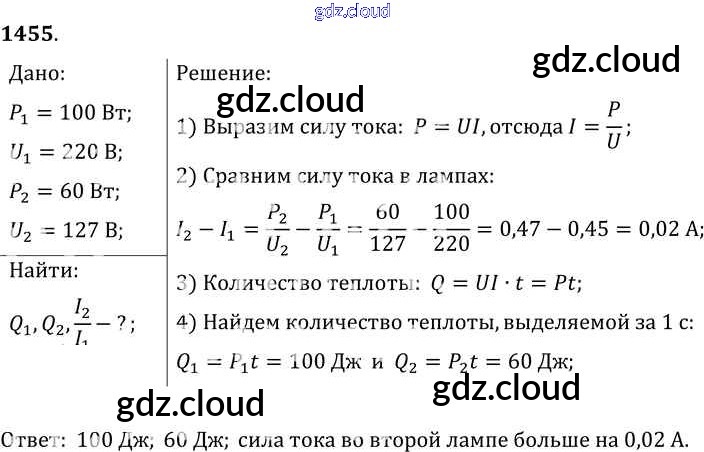 Ответ на задание 1455 Сборник задач Физика за 7, 8, 9 (седьмой, восьмой, девятый) класс Лукашик, Иванова 2011