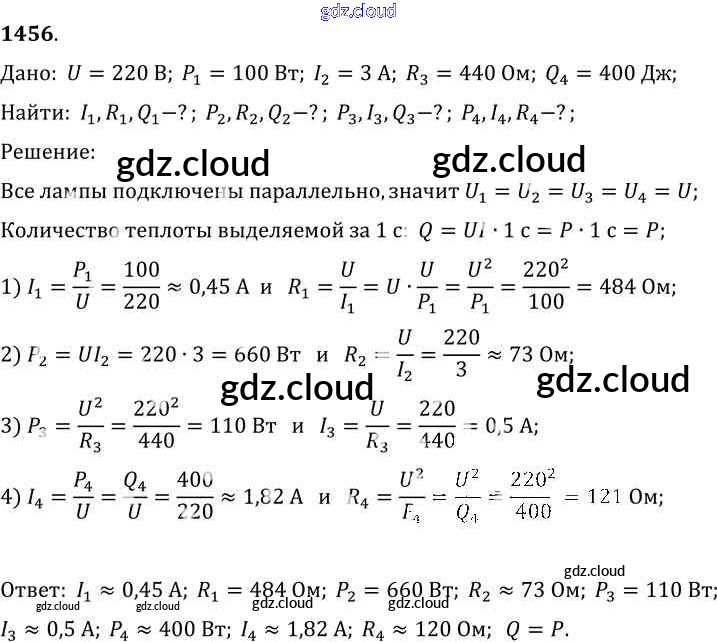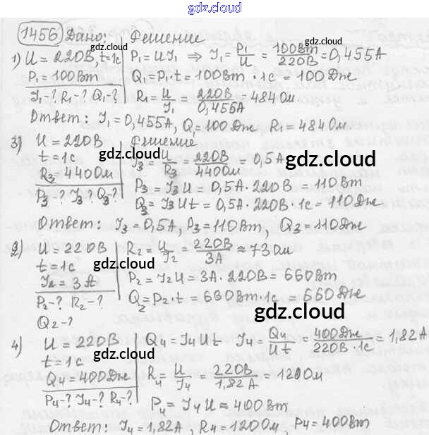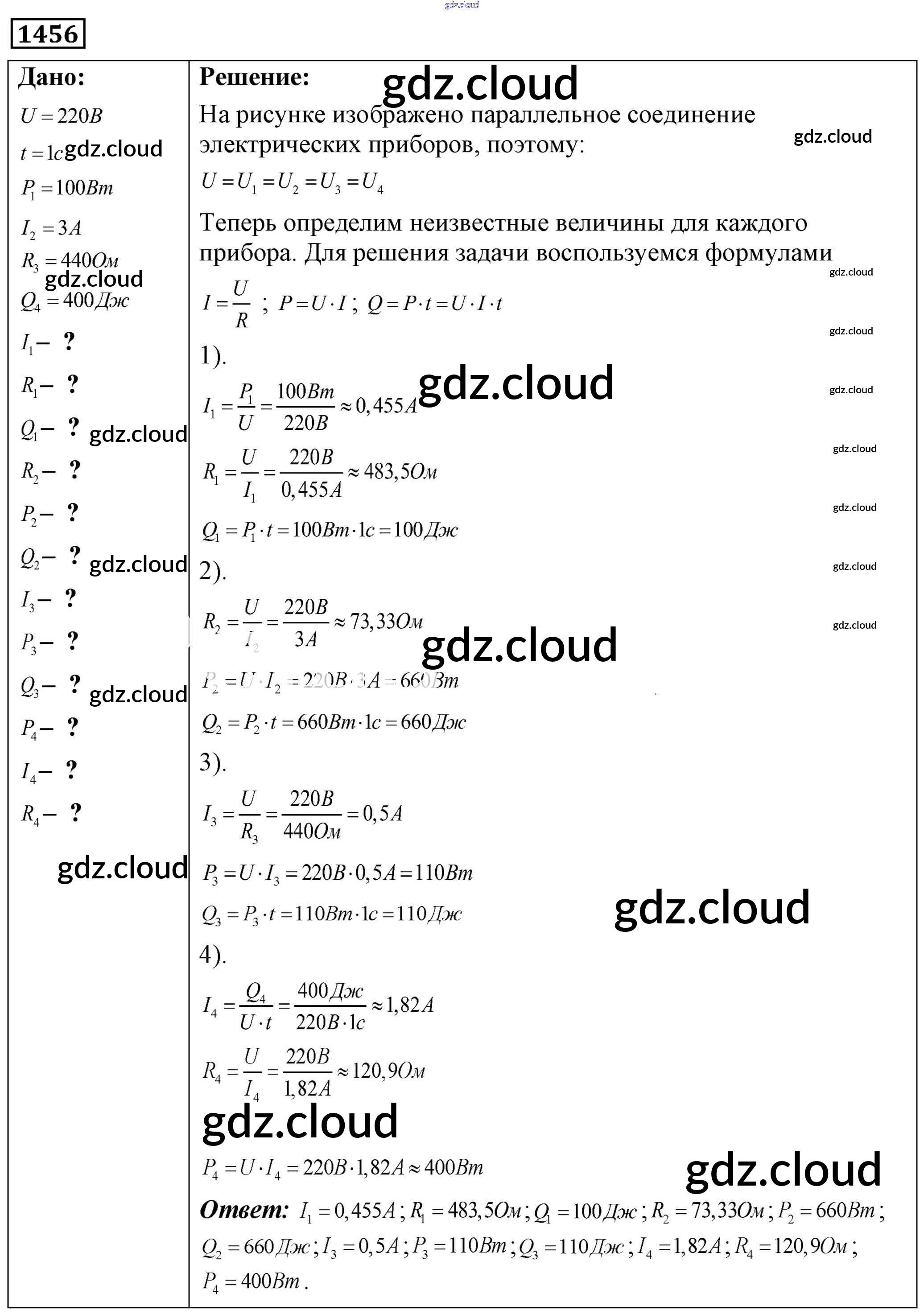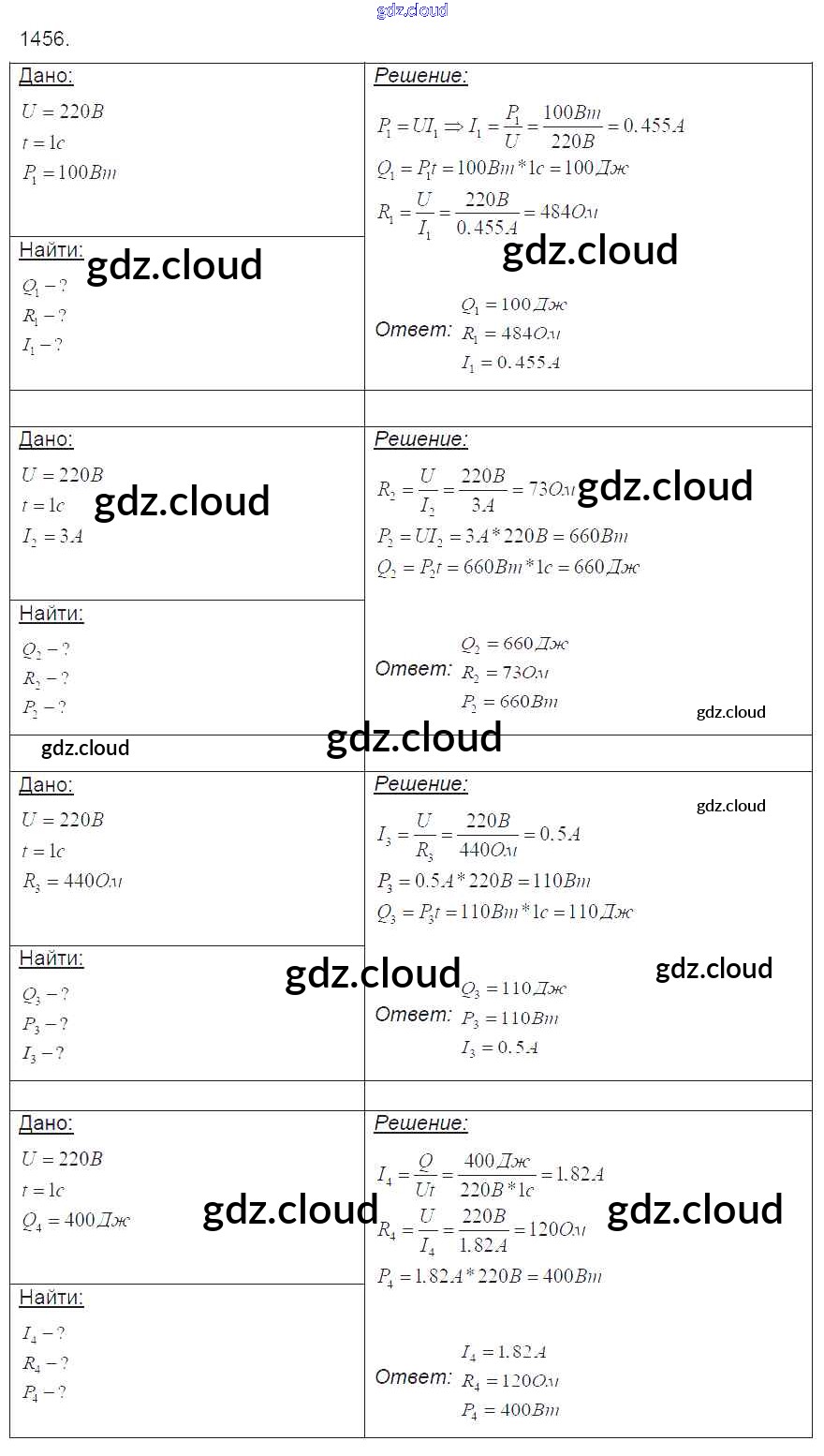 Ответ на задание 1456 Сборник задач Физика за 7, 8, 9 (седьмой, восьмой, девятый) класс Лукашик, Иванова 2011