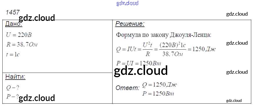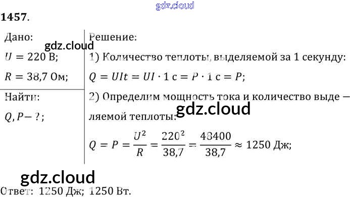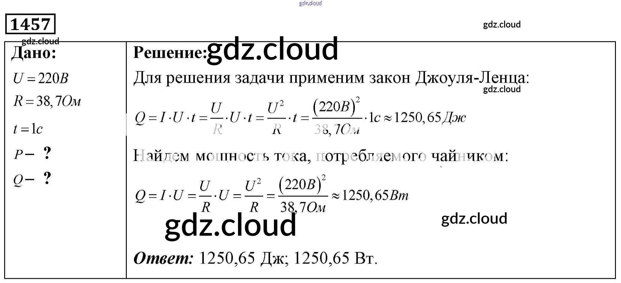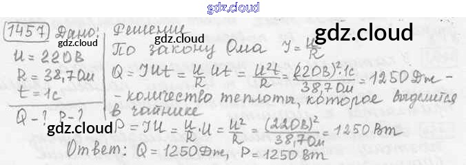 Ответ на задание 1457 Сборник задач Физика за 7, 8, 9 (седьмой, восьмой, девятый) класс Лукашик, Иванова 2011