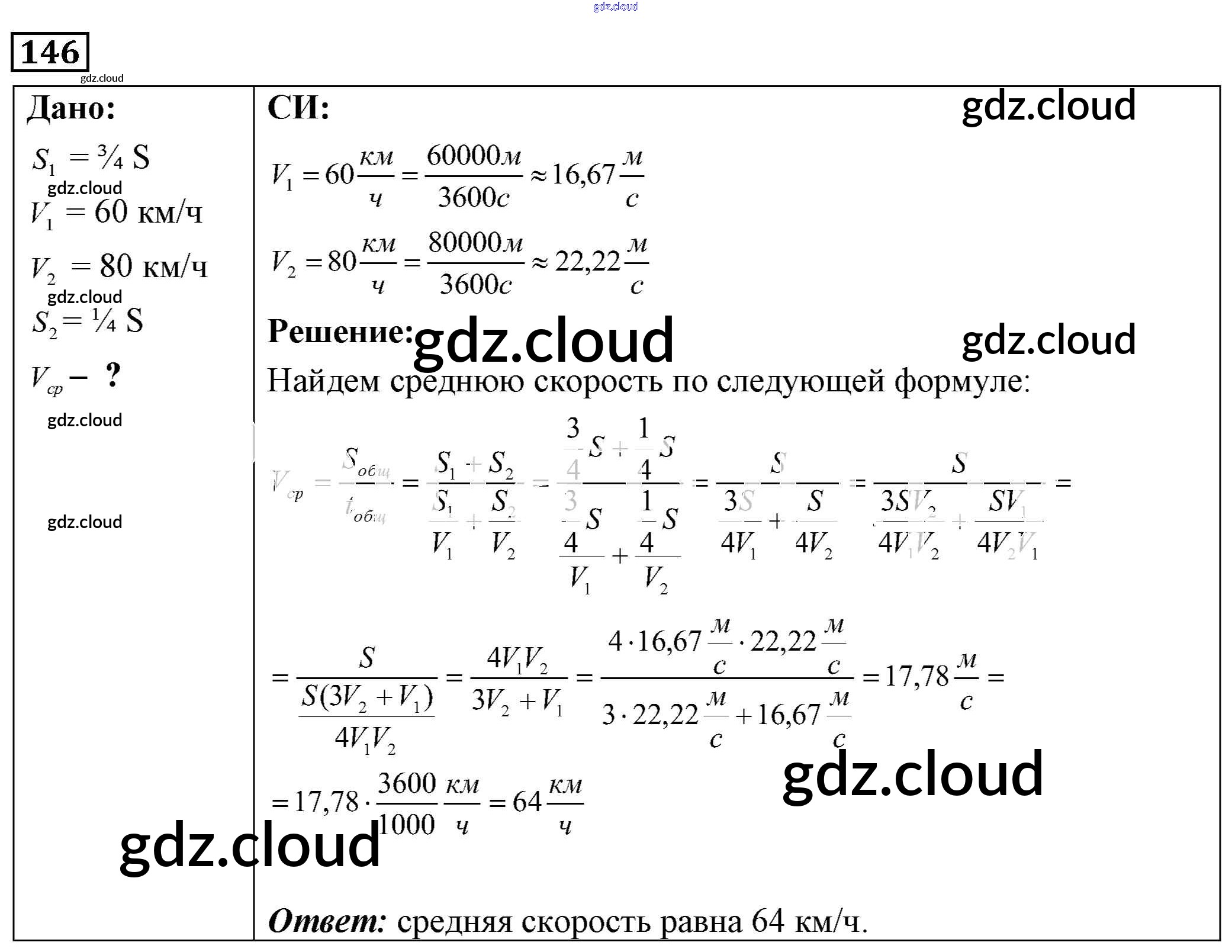 Ответ на задание 146 Сборник задач Физика за 7, 8, 9 (седьмой, восьмой, девятый) класс Лукашик, Иванова 2011
