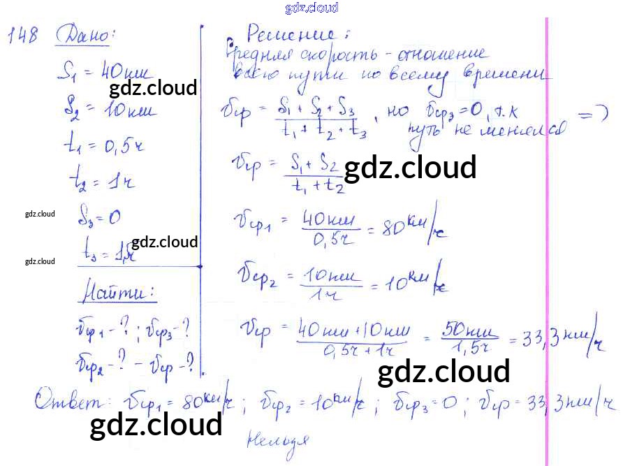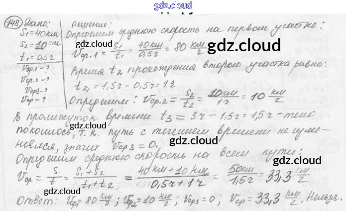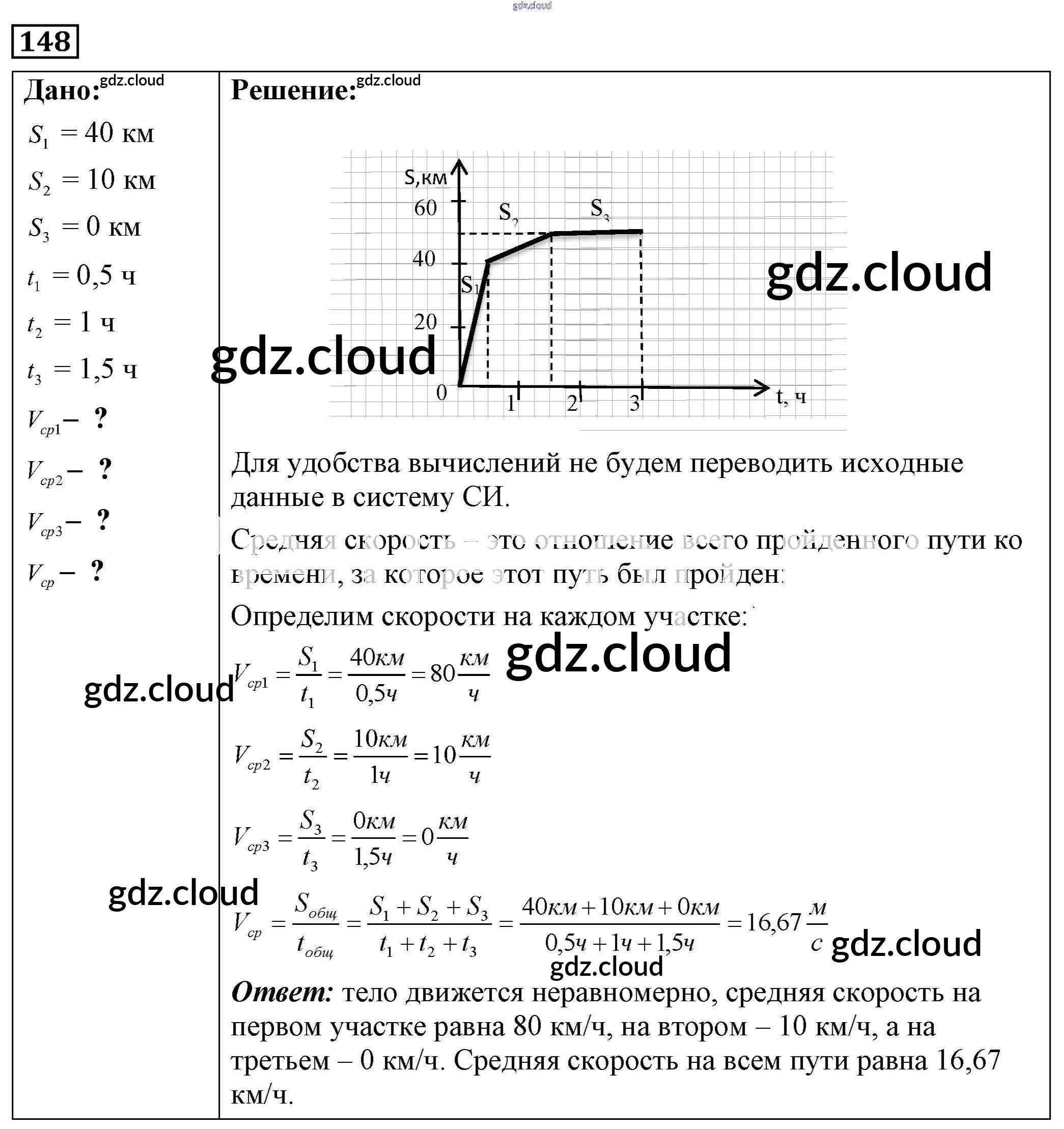 Ответ на задание 148 Сборник задач Физика за 7, 8, 9 (седьмой, восьмой, девятый) класс Лукашик, Иванова 2011