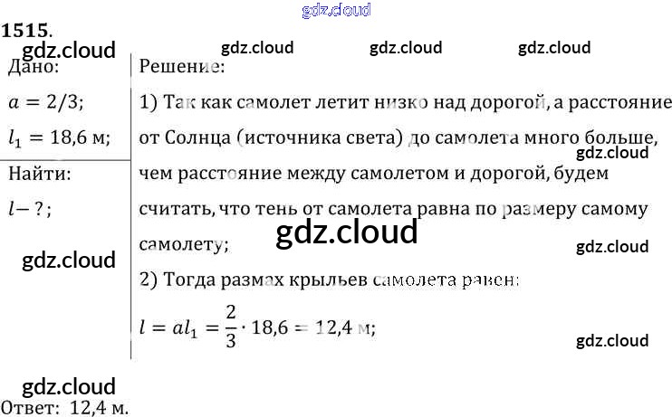 Ответ на задание 1515 Сборник задач Физика за 7, 8, 9 (седьмой, восьмой, девятый) класс Лукашик, Иванова 2011