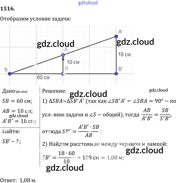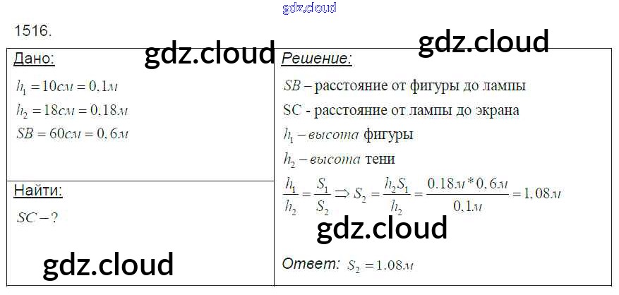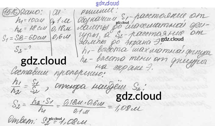 Ответ на задание 1516 Сборник задач Физика за 7, 8, 9 (седьмой, восьмой, девятый) класс Лукашик, Иванова 2011