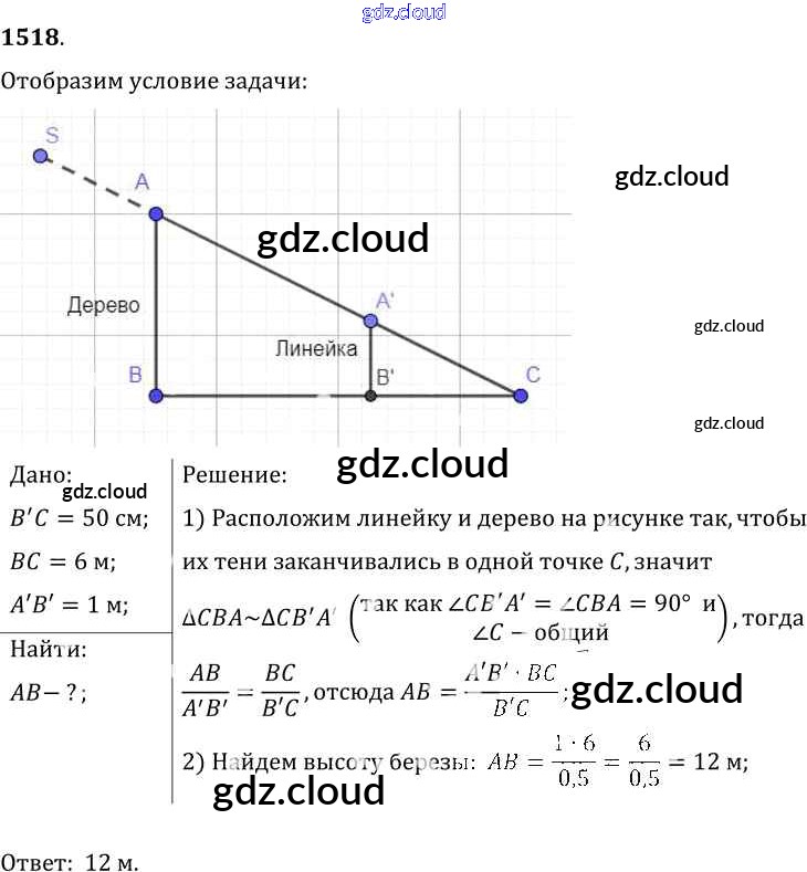 Ответ на задание 1518 Сборник задач Физика за 7, 8, 9 (седьмой, восьмой, девятый) класс Лукашик, Иванова 2011