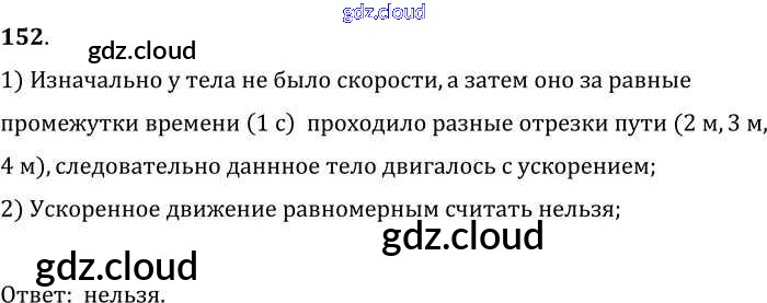 Ответ на задание 152 Сборник задач Физика за 7, 8, 9 (седьмой, восьмой, девятый) класс Лукашик, Иванова 2011