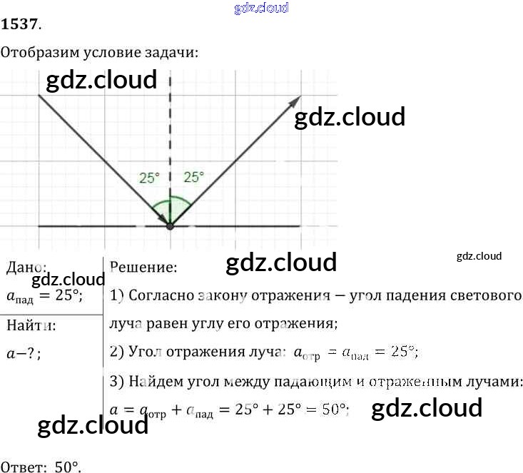 Ответ на задание 1537 Сборник задач Физика за 7, 8, 9 (седьмой, восьмой, девятый) класс Лукашик, Иванова 2011