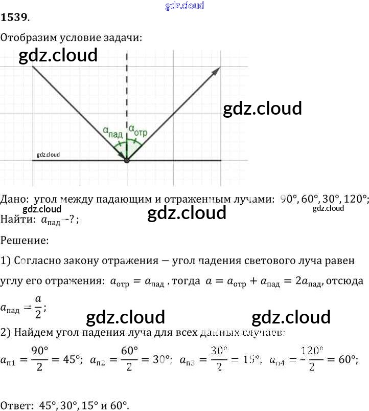 Ответ на задание 1539 Сборник задач Физика за 7, 8, 9 (седьмой, восьмой, девятый) класс Лукашик, Иванова 2011