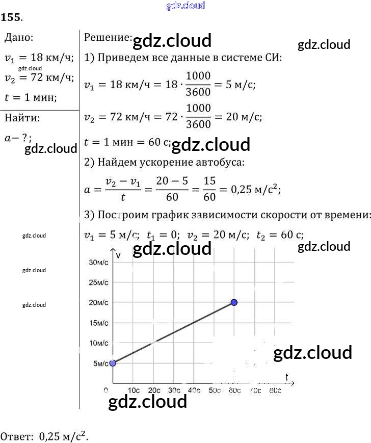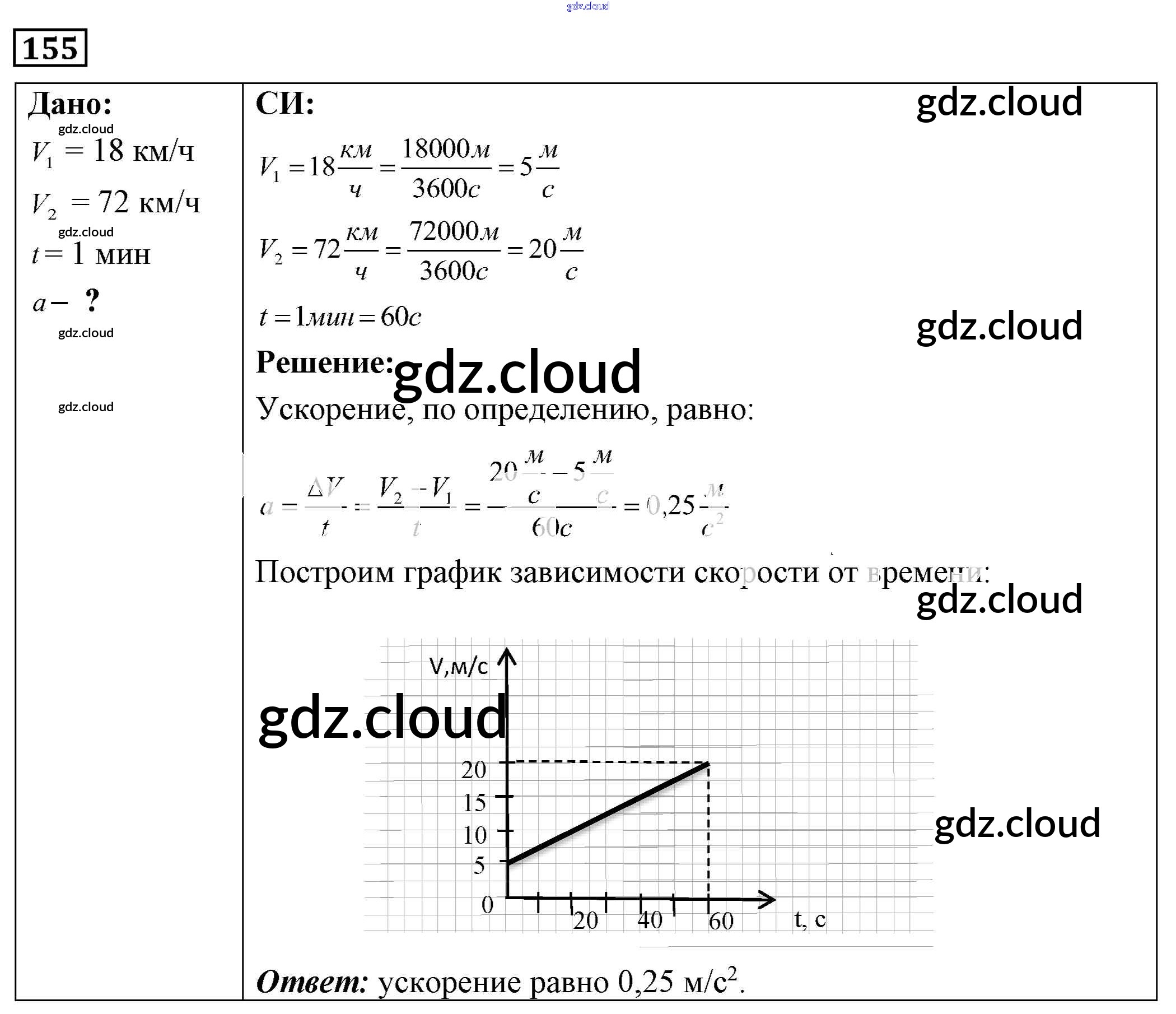 Ответ на задание 155 Сборник задач Физика за 7, 8, 9 (седьмой, восьмой, девятый) класс Лукашик, Иванова 2011