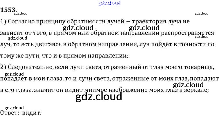 Ответ на задание 1553 Сборник задач Физика за 7, 8, 9 (седьмой, восьмой, девятый) класс Лукашик, Иванова 2011