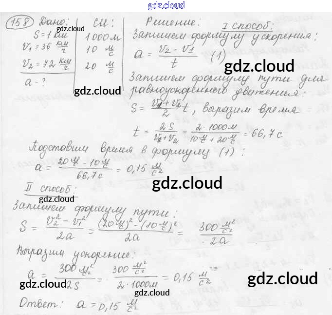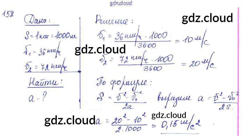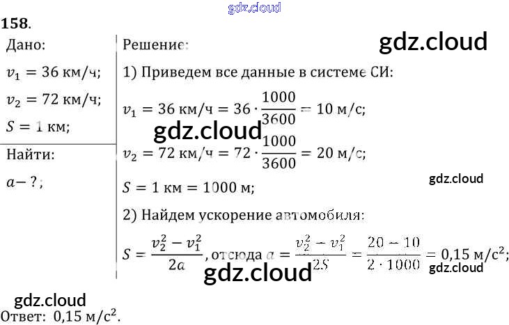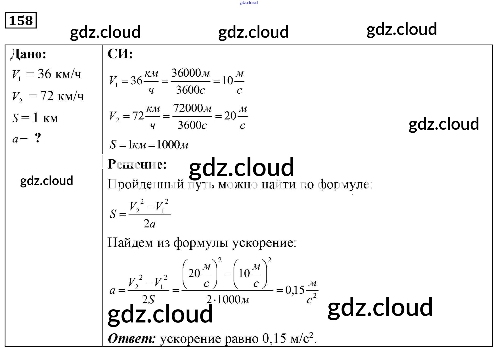 Ответ на задание 158 Сборник задач Физика за 7, 8, 9 (седьмой, восьмой, девятый) класс Лукашик, Иванова 2011