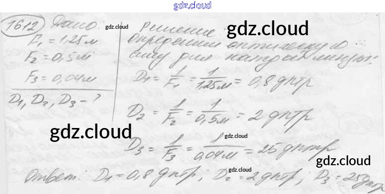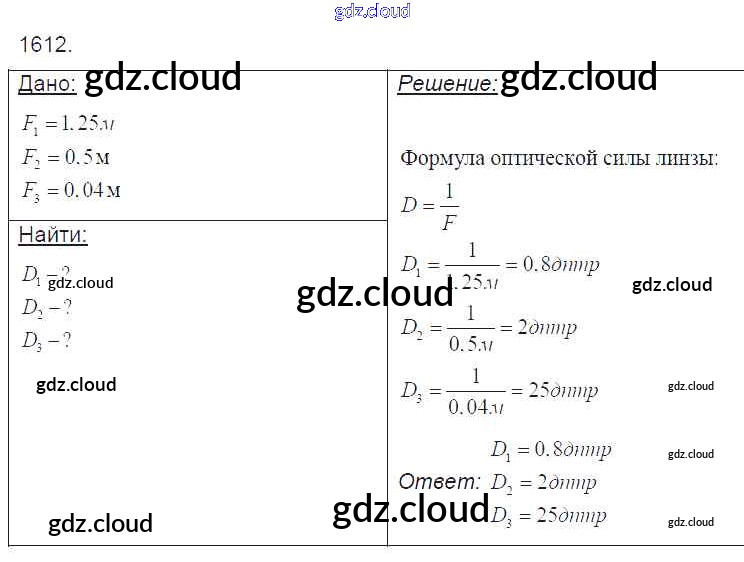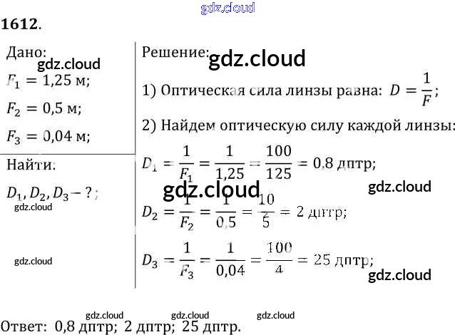 Ответ на задание 1612 Сборник задач Физика за 7, 8, 9 (седьмой, восьмой, девятый) класс Лукашик, Иванова 2011