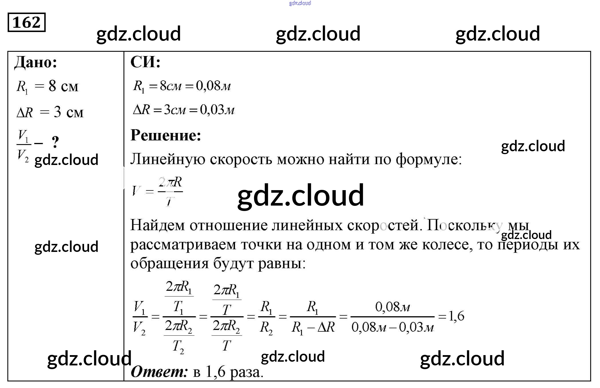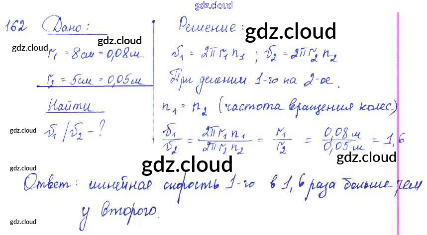 Ответ на задание 162 Сборник задач Физика за 7, 8, 9 (седьмой, восьмой, девятый) класс Лукашик, Иванова 2011